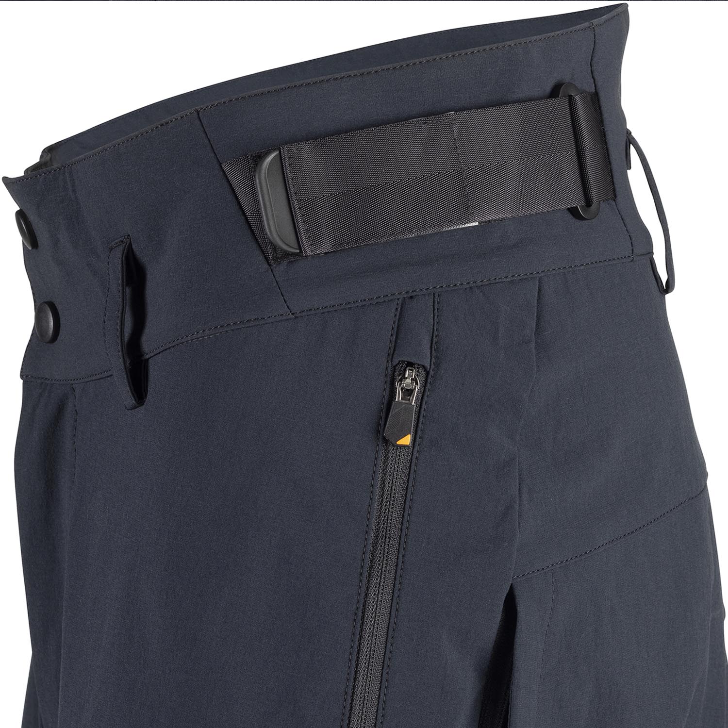- Bike-focused design with high rear waist and articulated knees for riding comfort