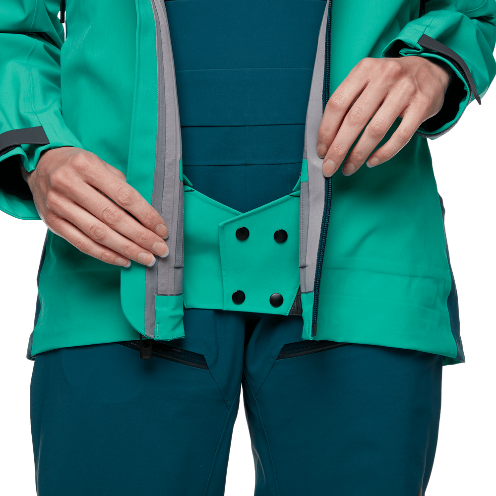 Snøskjørt som kan tas av, ventilasjonsglidelåser, hette som kan brukes over hjelmen, lomme for heiskort, praktisk innerlomme for skibriller, justerbar borrelås i erme-mansjettene.