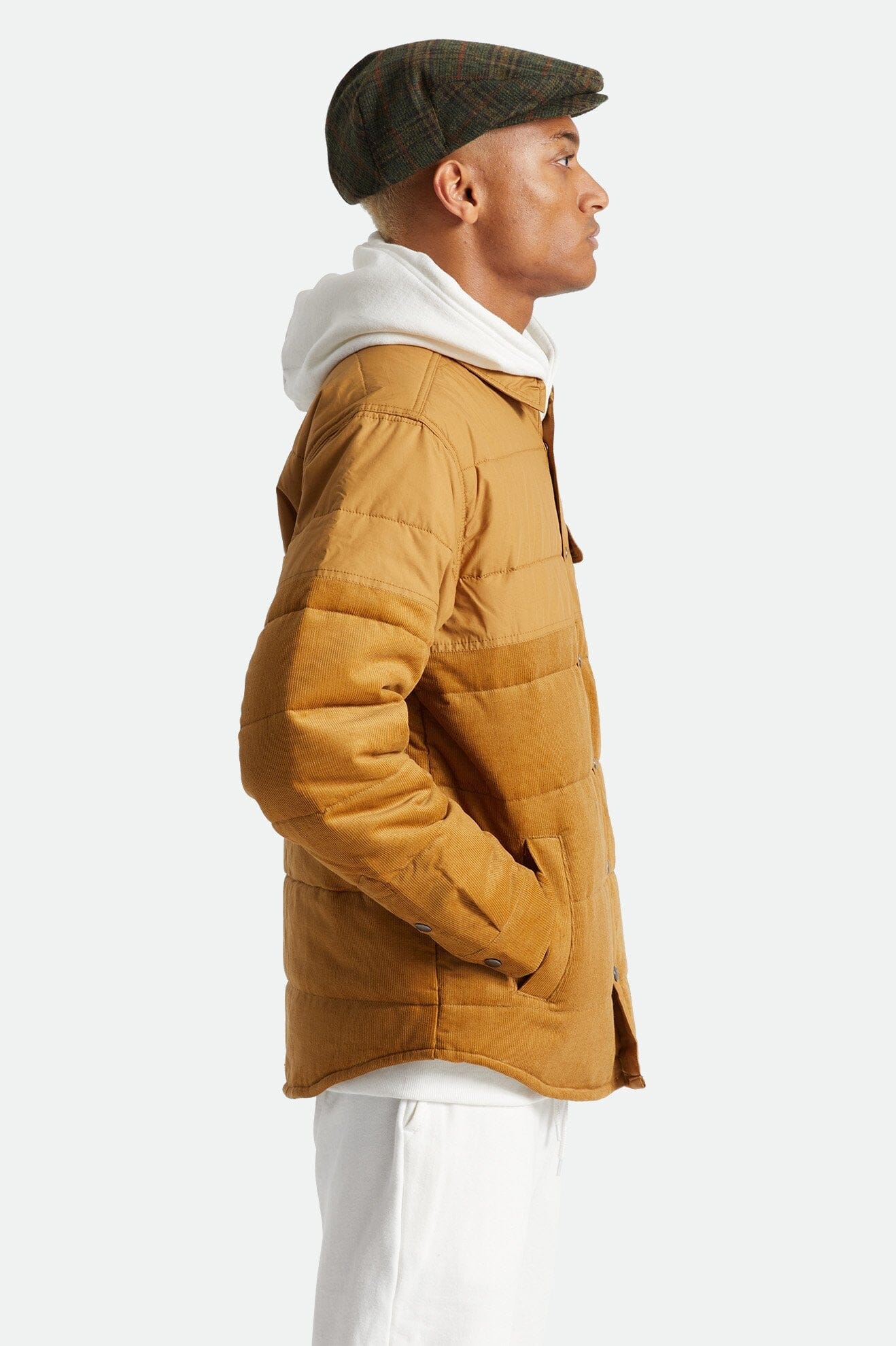 Jakka har ulike teksturer som gir en spennende kontrast. Standard passform med buet kant i sidene, mansjettermer med knapper, sidelommer og lomme på bryst. Jakka er lettere fôret og passer perfekt for norske mellomsesonger, eller som mellomlag når det er bikkjekaldt.