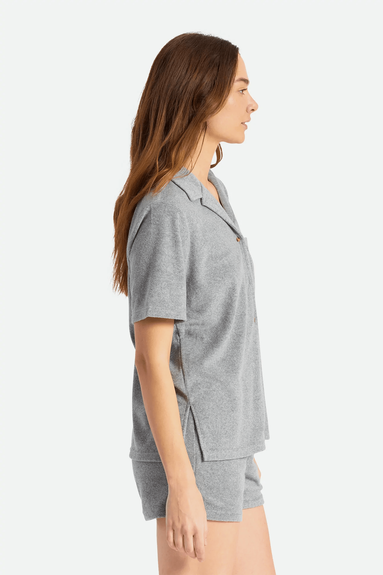 Kortermet dameskjorte i mykt frottéstoff, behagelig å ha på både til hverdagsbruk eller på reisefot.