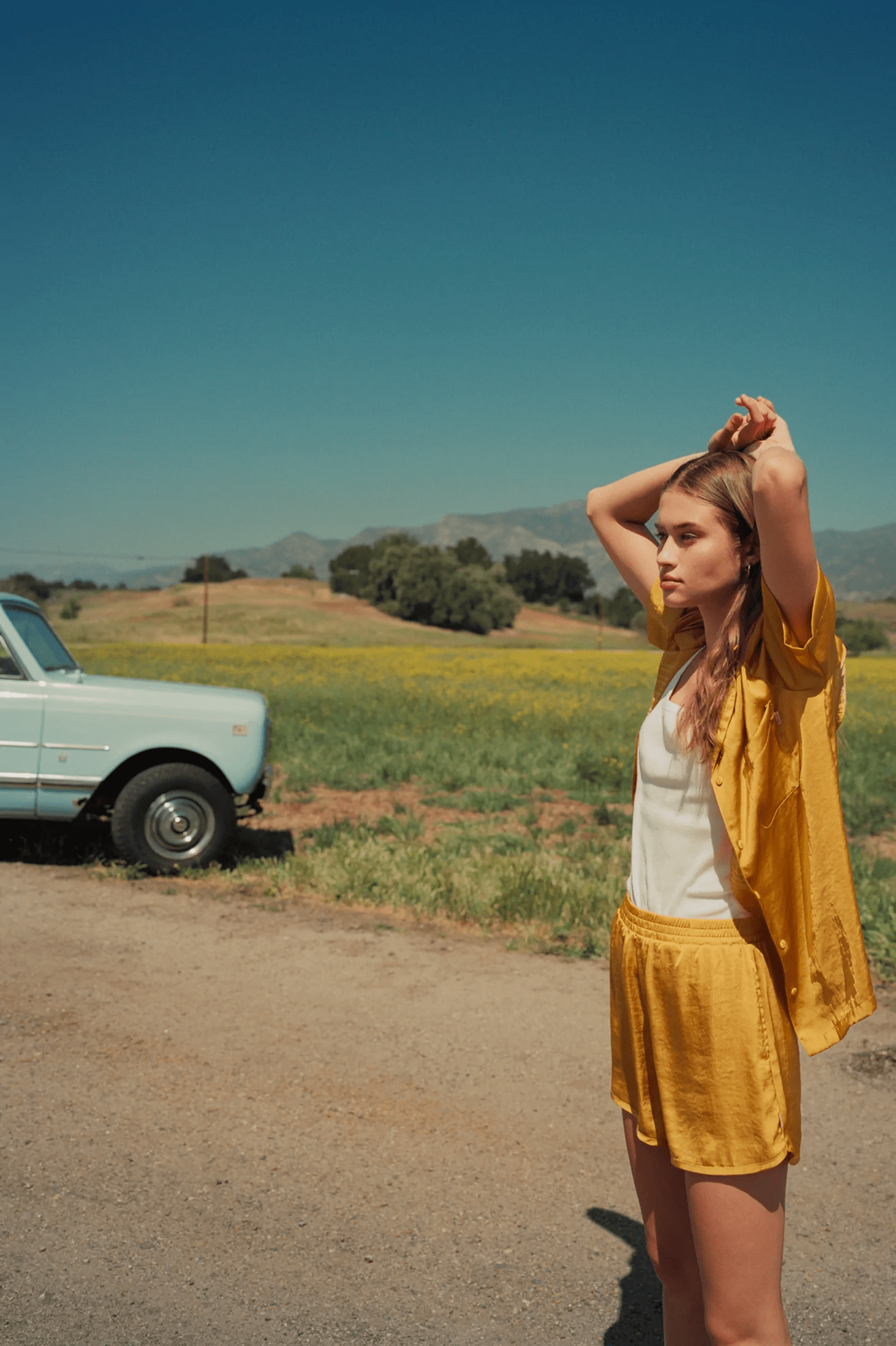 Superlett kortermet dameskjorte med delikat loungewear-look.
