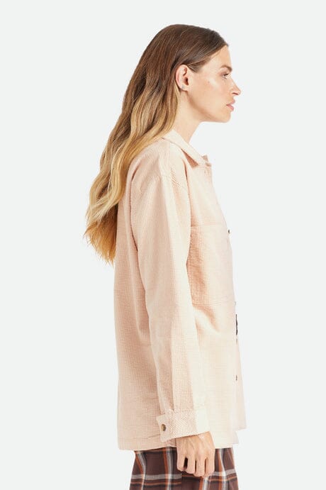 Selv om skjorta er strukturert i tekstilen, er den likevel myk og kan brukes lag på lag. Materiale i 100% bomull gjør skjorta slitesterk. Oversized frontlommer, rett kant og flatterende ryggsøm.