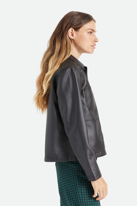 Brixton Survey Boxy Chore Coat er en oppdatert og moderne utgave av den klassiske skinnjakka, med avslappet passform, anvendelig lengde og dekorative lommer i front.