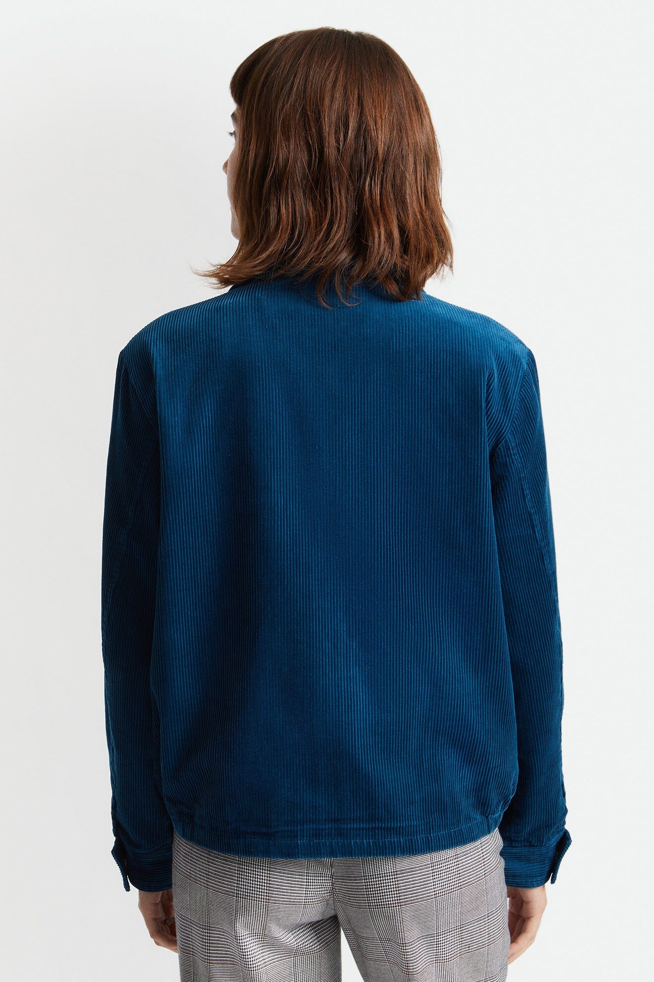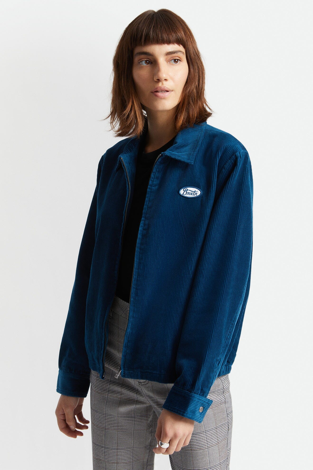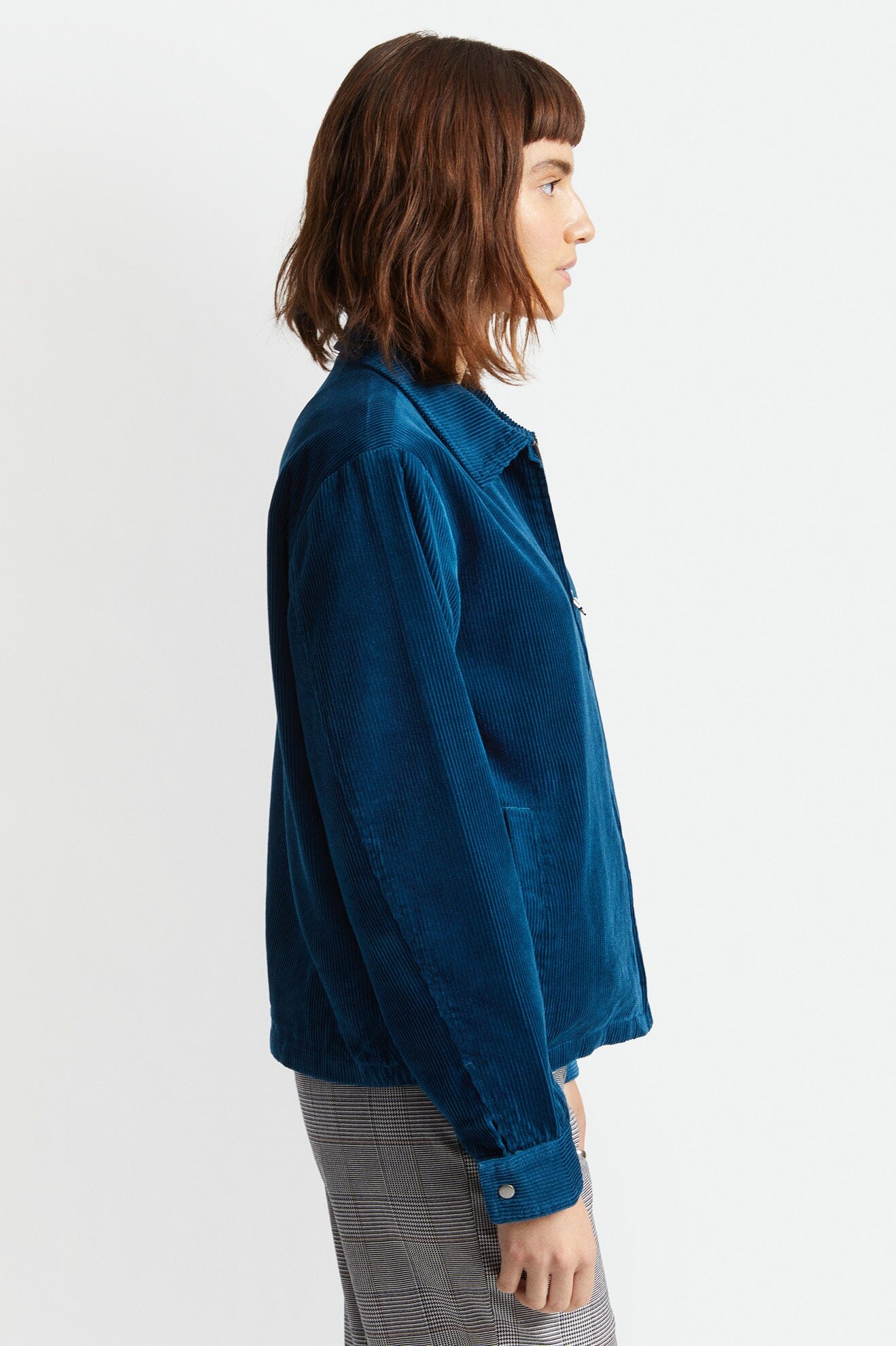 Tidløs og stilren ytterjakke til dame i work wear-stil. Jakka har praktiske sidelommer, krage, skjult glidelås i front, lett elastikk i siden og brede mansjetter i ermene med knapper.
