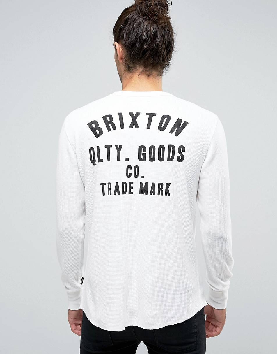 Trøya har klassisk longsleeve-hals og ermer. Brixton-trykk på bryst og på ryggen.