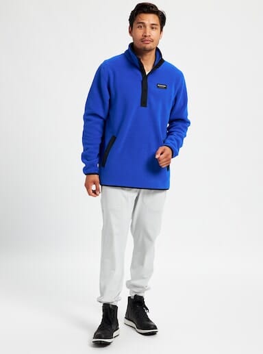 Warmth comes in many fuzzy forms and one of them is the men's Burton Hearth Fleece Pullover. Classic style and Polartec® fleece add breathable warmth to this easy-to-wear pullover. Zippered hand-warmer pockets and elastane binding at the cuffs, hem, and collar ramp up the cozy factor.