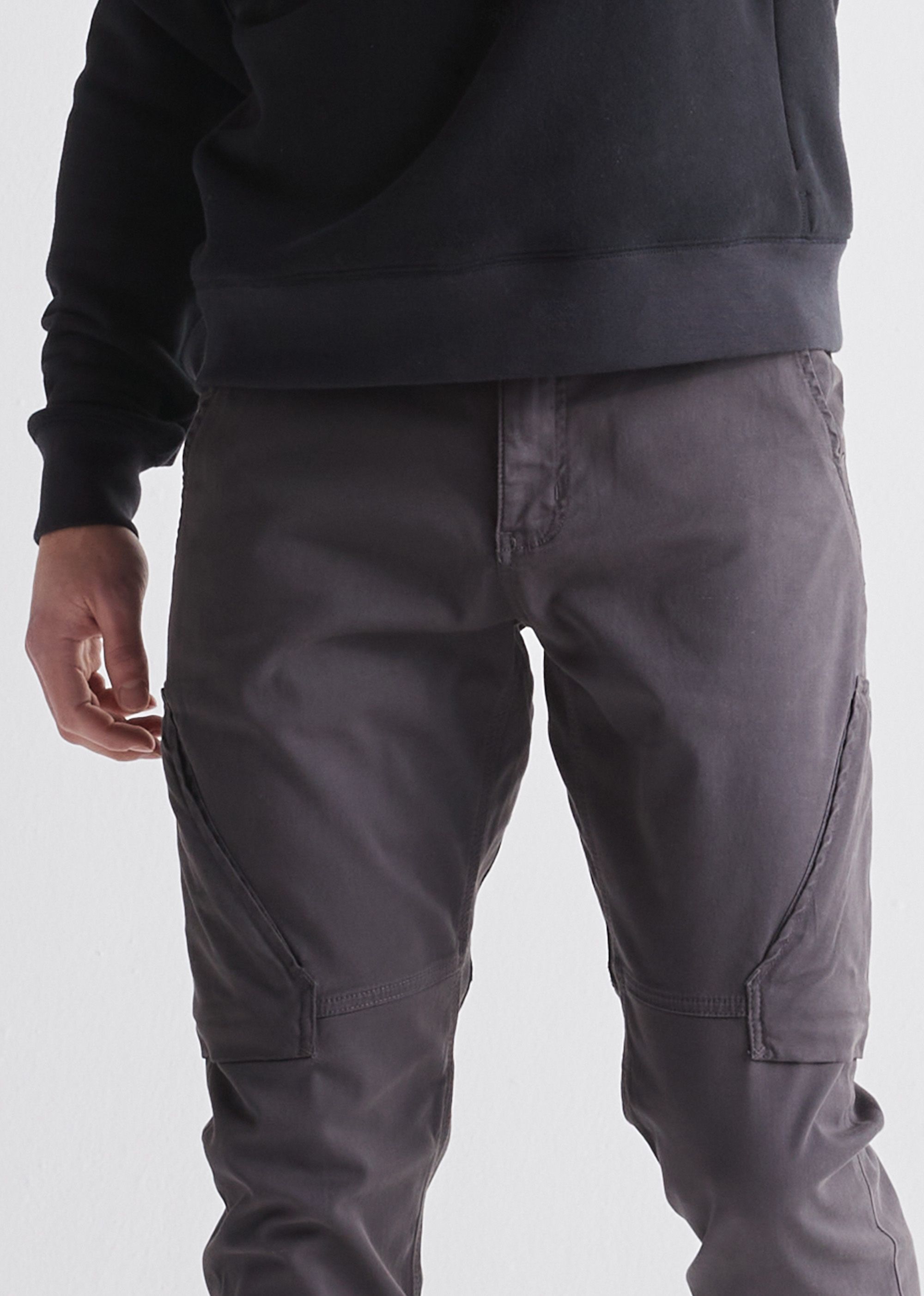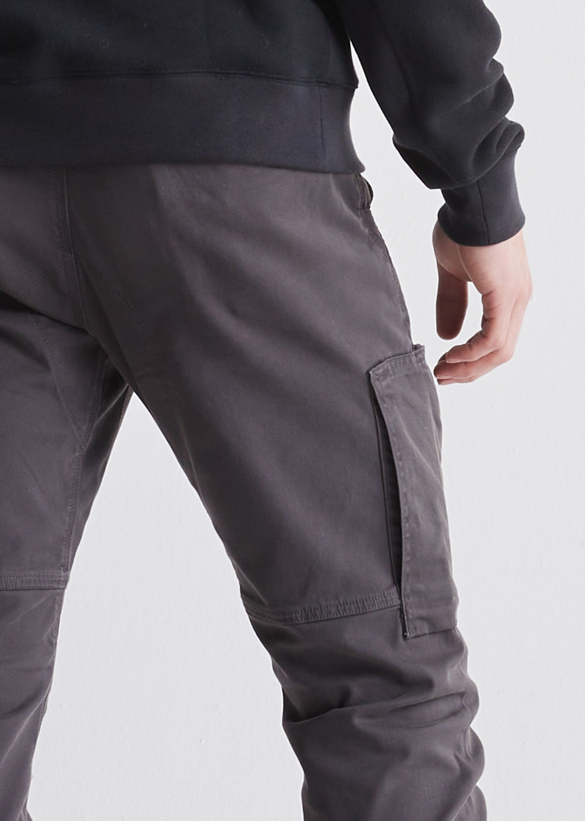 - Relaxed through the hip and thigh with a tapered leg opening and adjustable cuff
