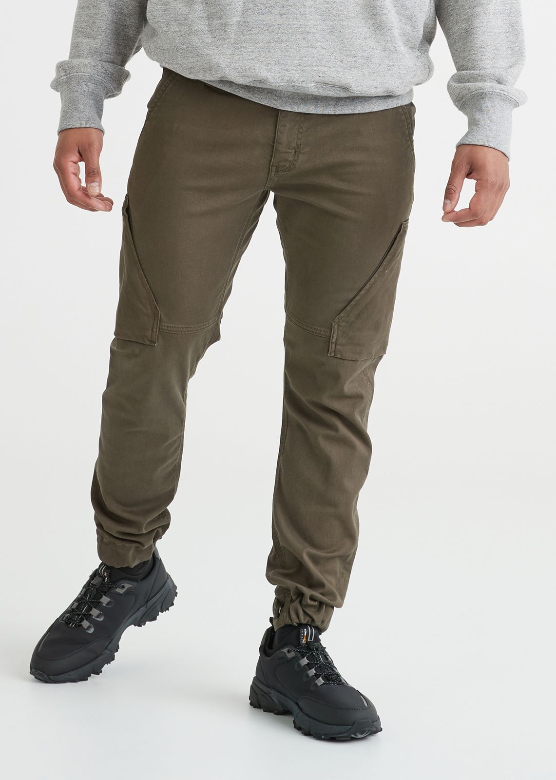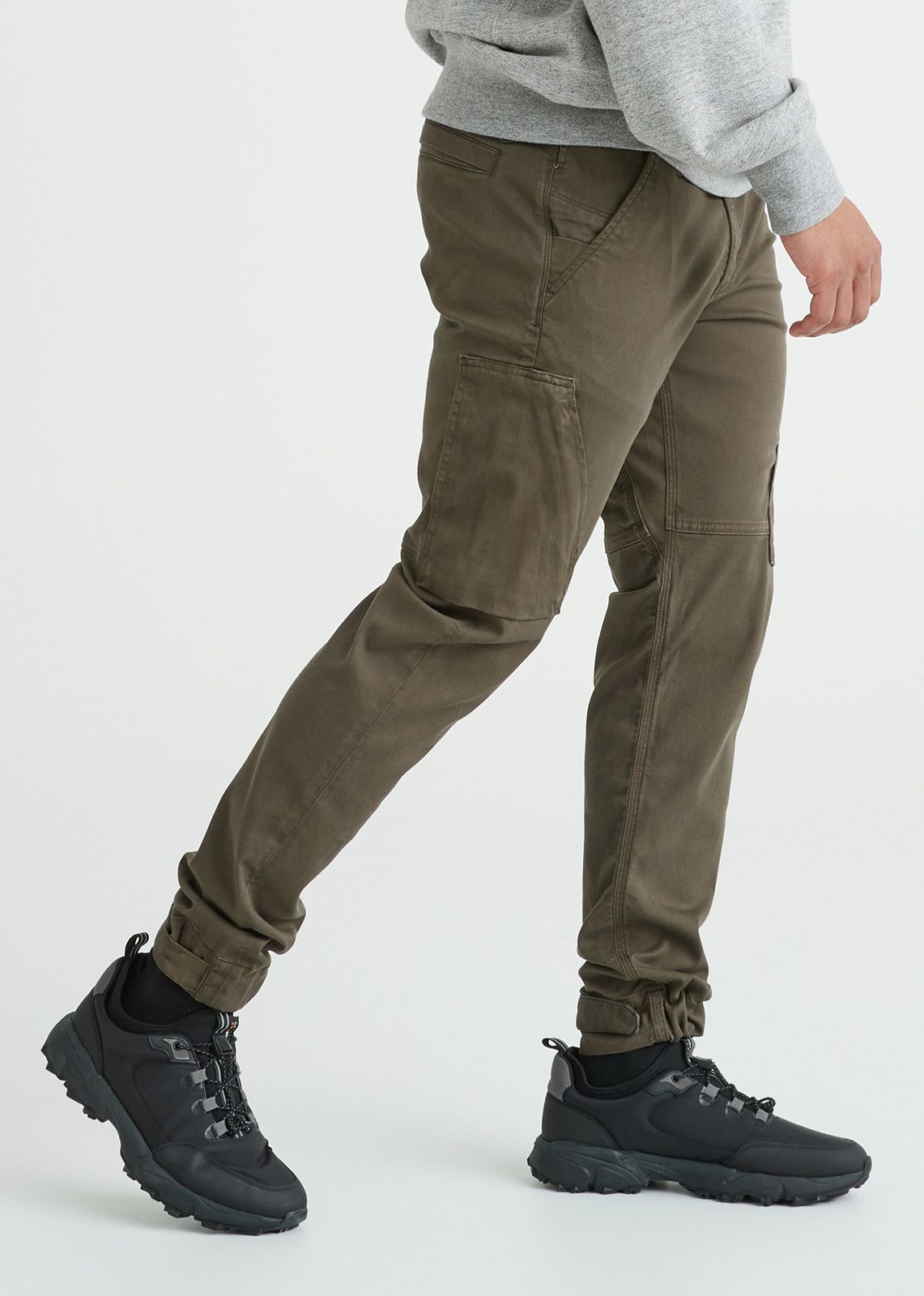 - Relaxed through the hip and thigh with a tapered leg opening and adjustable cuff