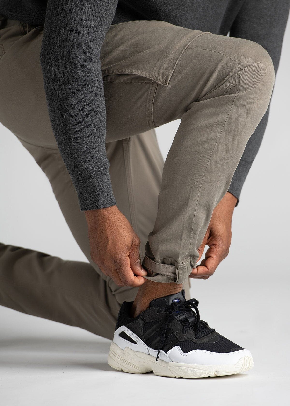 - Relaxed through the hip and thigh with a tapered leg opening and adjustable cuff