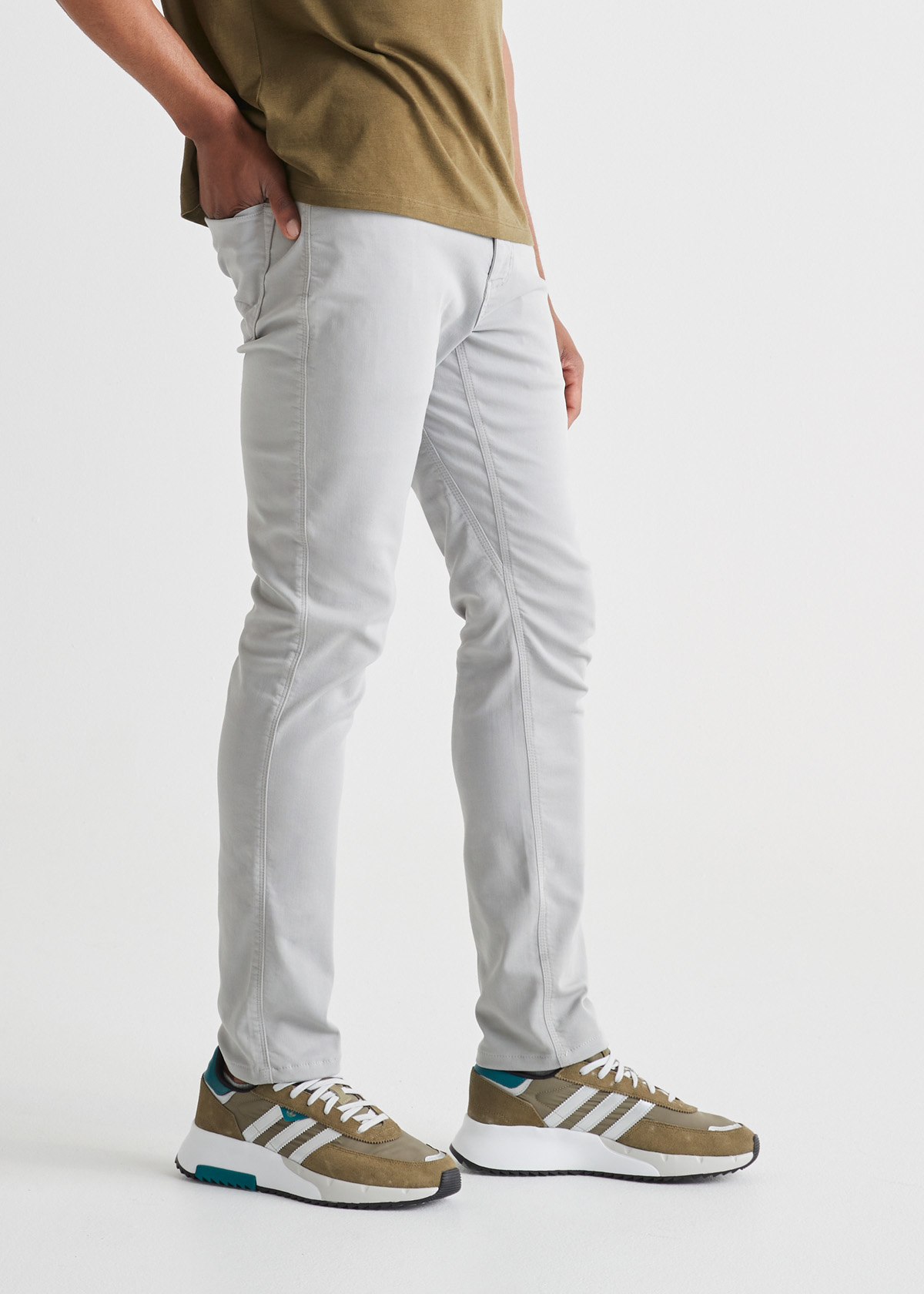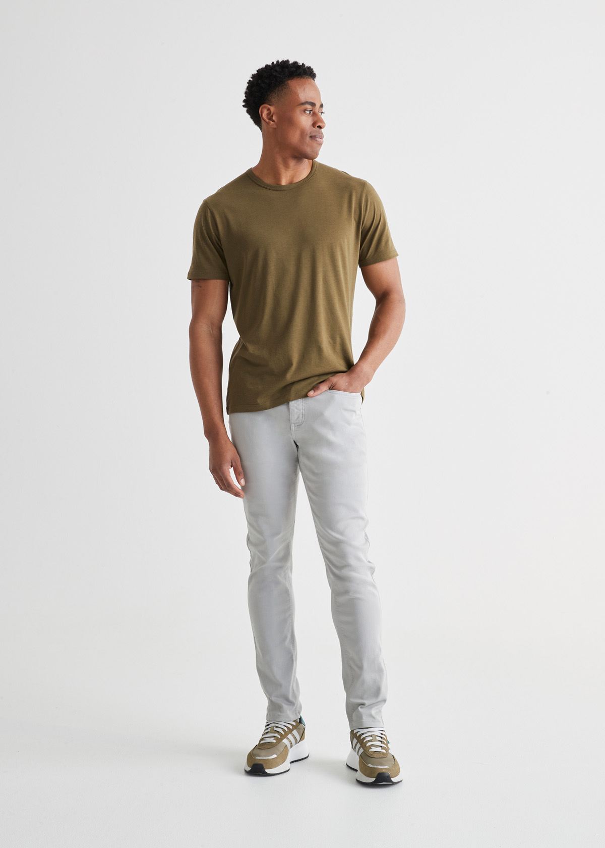 - Slim fit through the hip and thigh with a slightly tapered leg opening