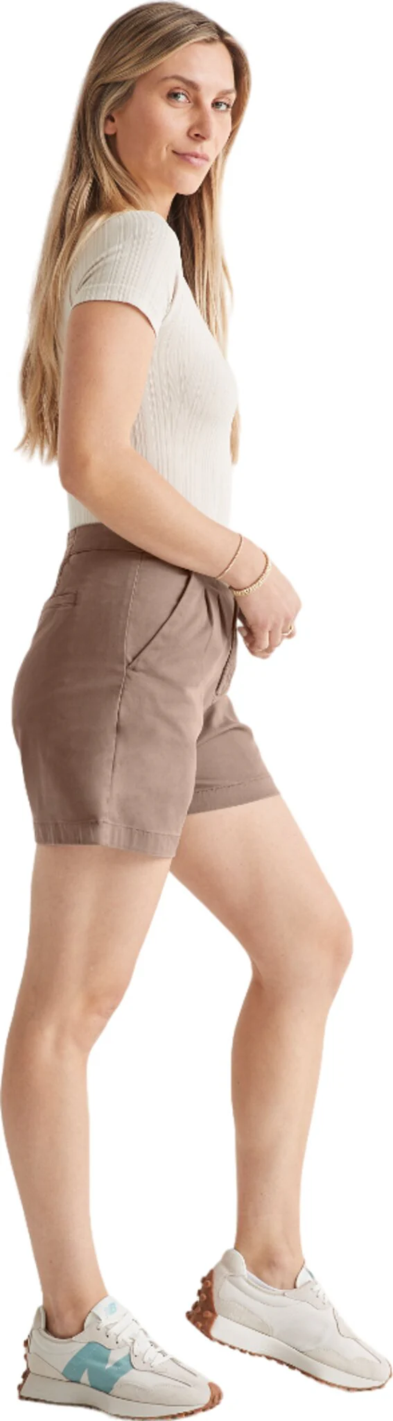 DUER Live Free Pleated er en sporty og stilig dameshorts med høyt liv som kan brukes til alt. Materialet er lett og behagelig, foldene i front og A-fasong med vide bein gir et sporty og fint utseende.