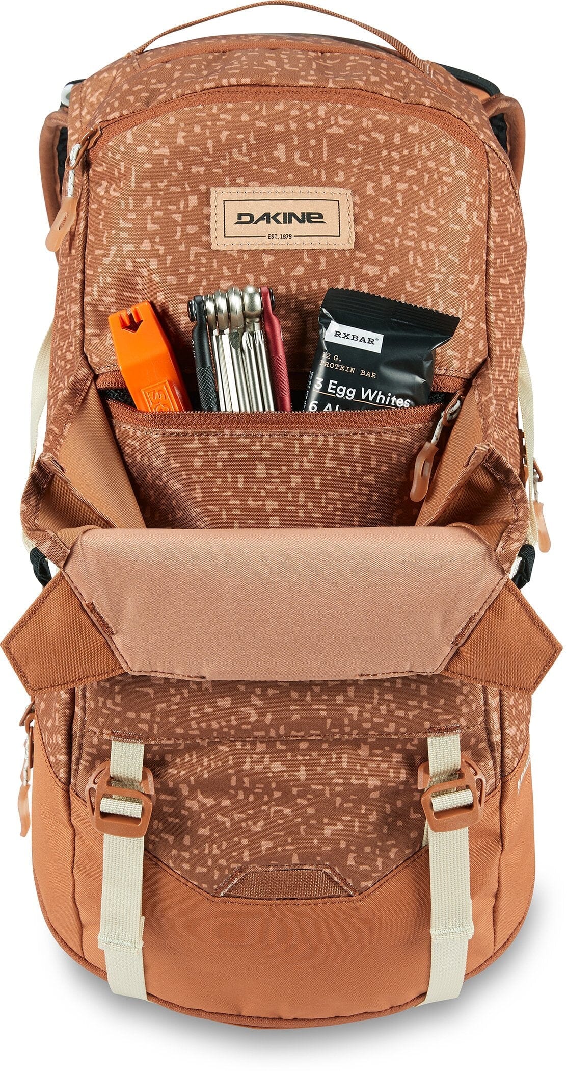 Dakine Drafter-sekken med spesielt tilpasset anatomi til damer. Sekkens konstruksjon sparer vekt, er mer behagelig på og har bedre pusteevne. Praktisk lommer for energibarer, verktøy, fleecelomme til solbrille og feste for hjelm.