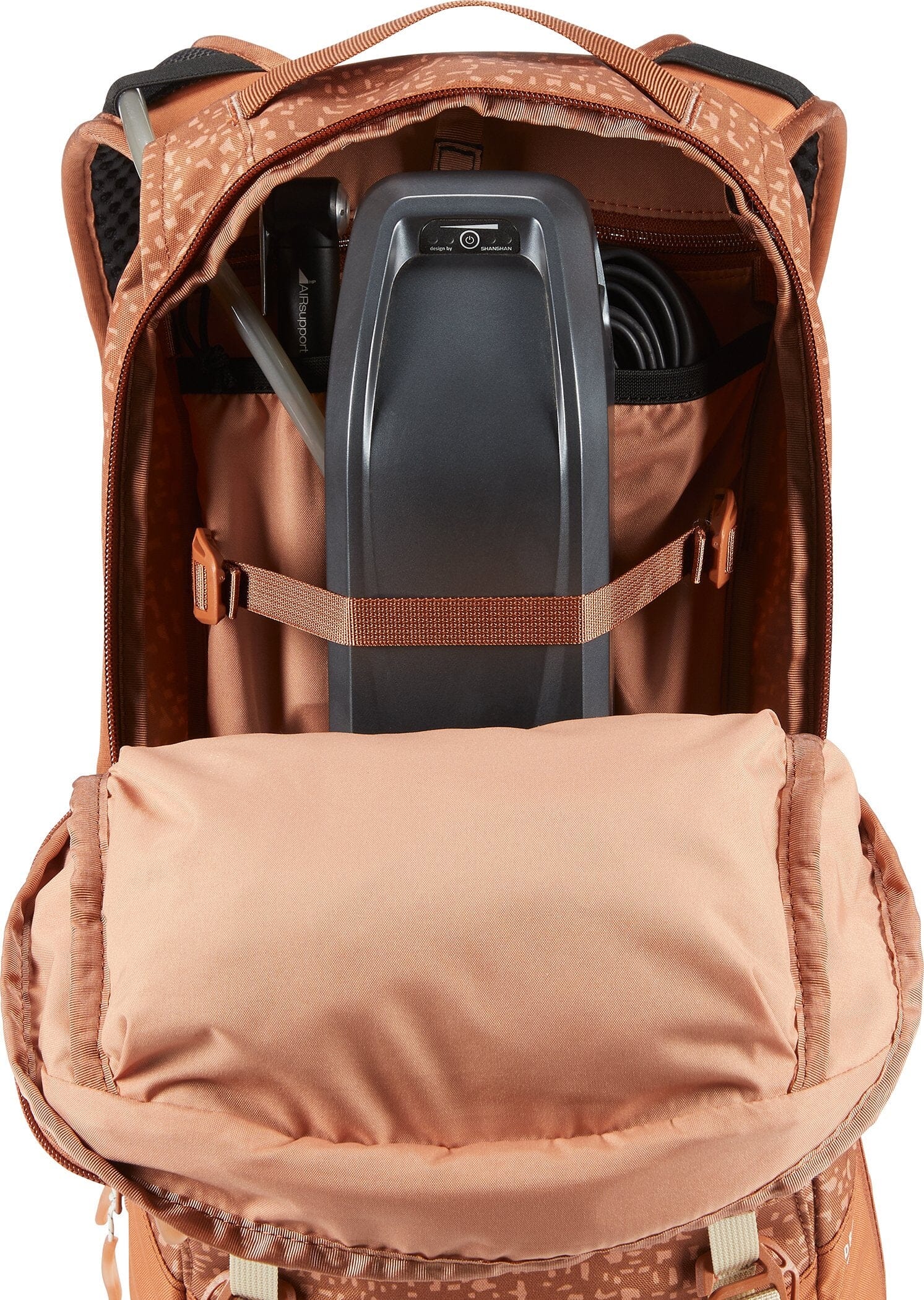 Egen oppbevaring for ekstra batteri til elsykkel, treliters Hydrapak-drikkepløse med magnetfeste til drikkeslangen. Kan brukes sammen med ryggbeskytter.