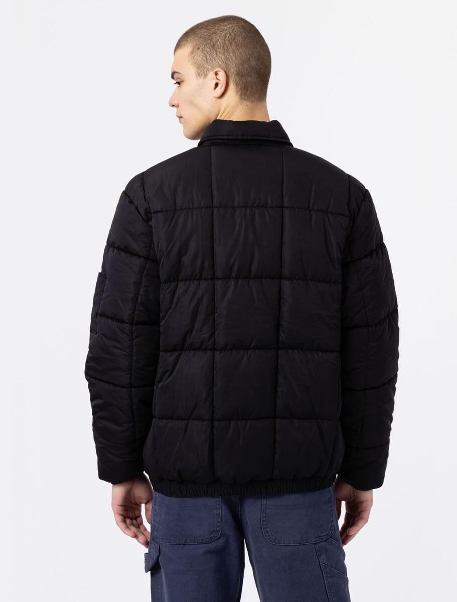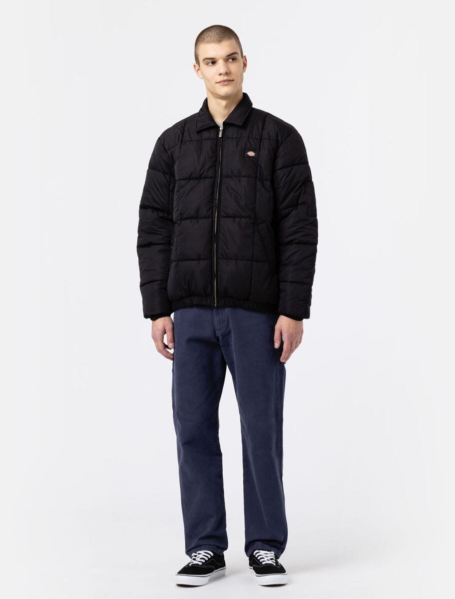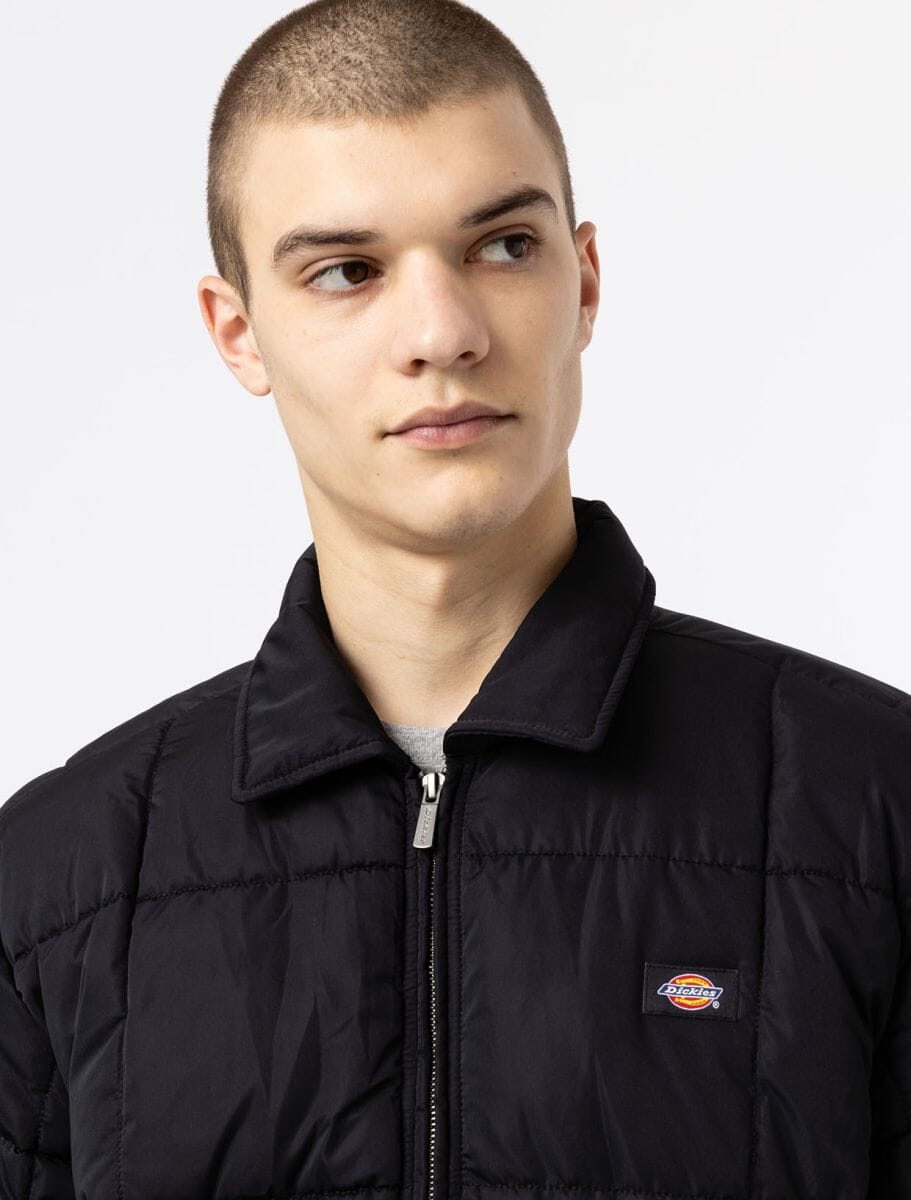 Jakka har vannavvisende ytre og rutete vatteringssømmer som holder isolasjonen på plass. Dickies Eisenhower Puffer-jakka har kort, workwear-inspirert og regular fit med litt boxy passform. Glidelås i front, to frontlommer i liten Dickies-logo på brystet.