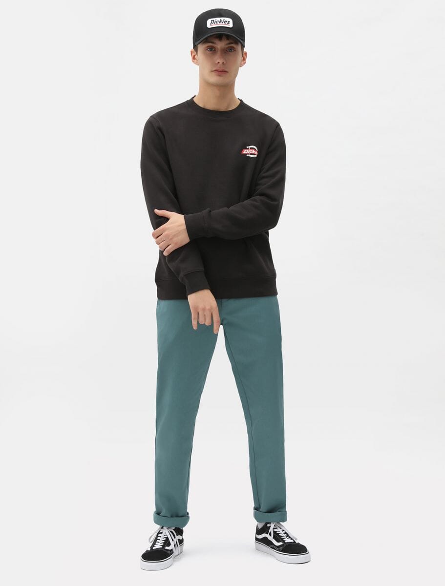 Normal passform, mansjetter i ermene og på nedre kant, Dickies-logo på brystet samt på ryggen. Materialet er forhåndsbehandlet, dvs. at det ikke skal krympe eller krølle seg etter vask.