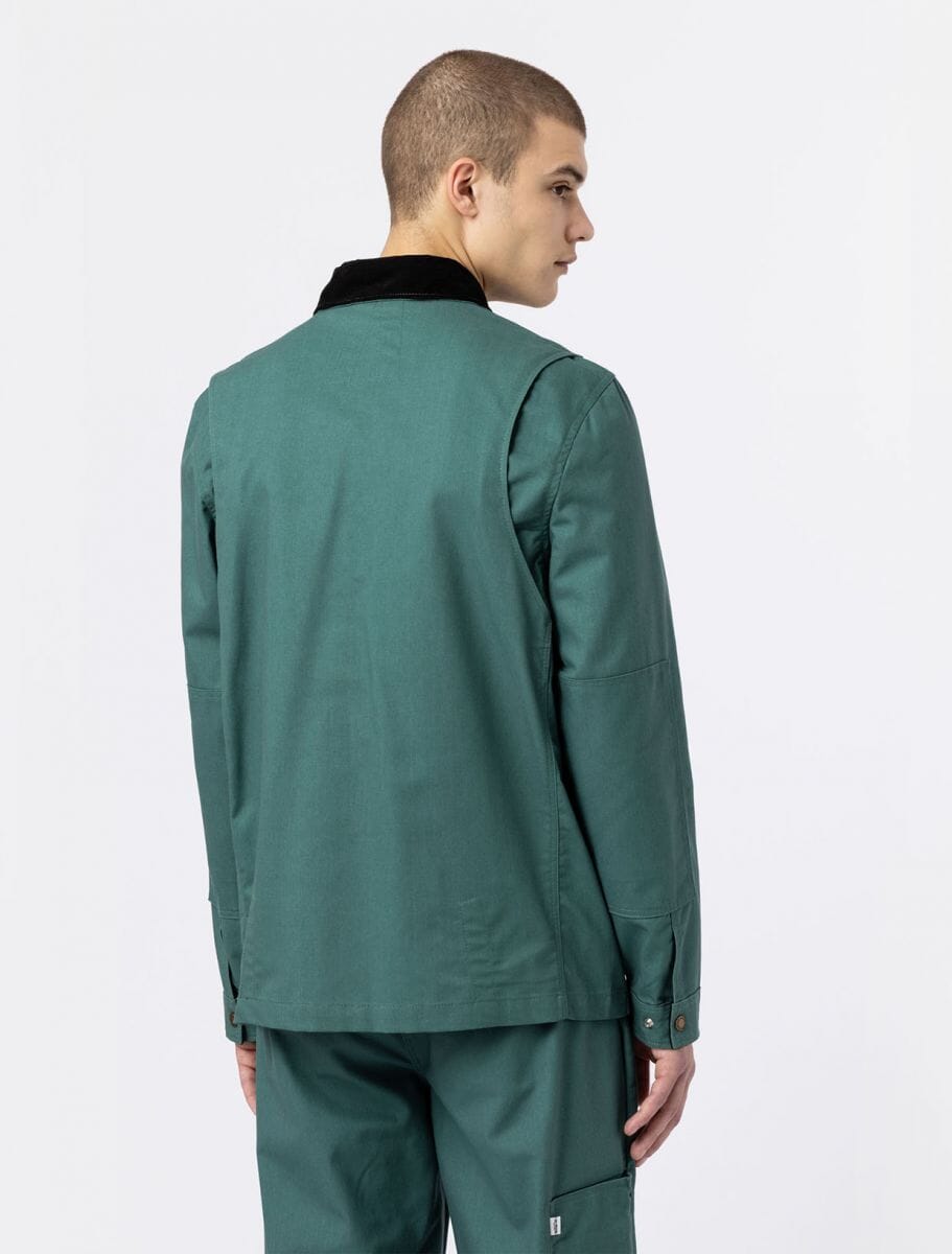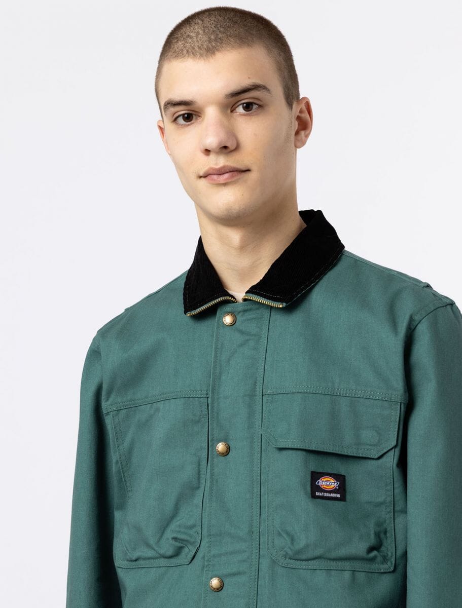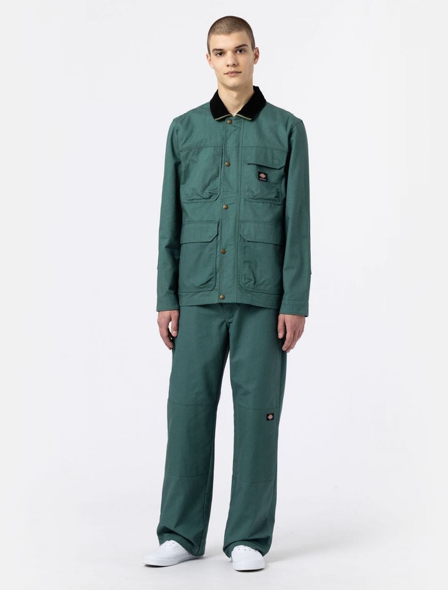 Dickies sin Storden-jakke har normal passform og gjennomtenkte detaljer som fold i ryggen som gir bedre bevegelsesfrihet, forsterkninger i albuene, innvendige bærestropper og lomme for telefon.