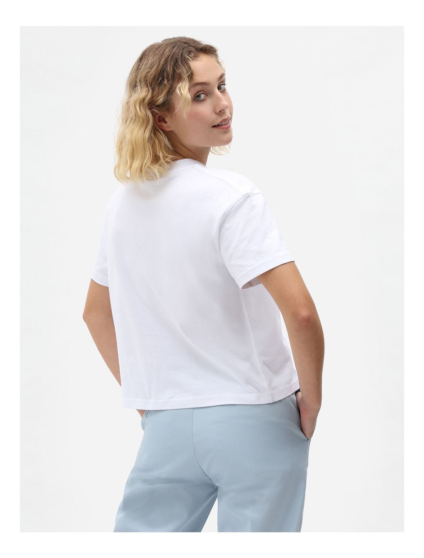 T-skjorte til dame med noe kortere lengde og firkantet passform for sporty streetwear-style.