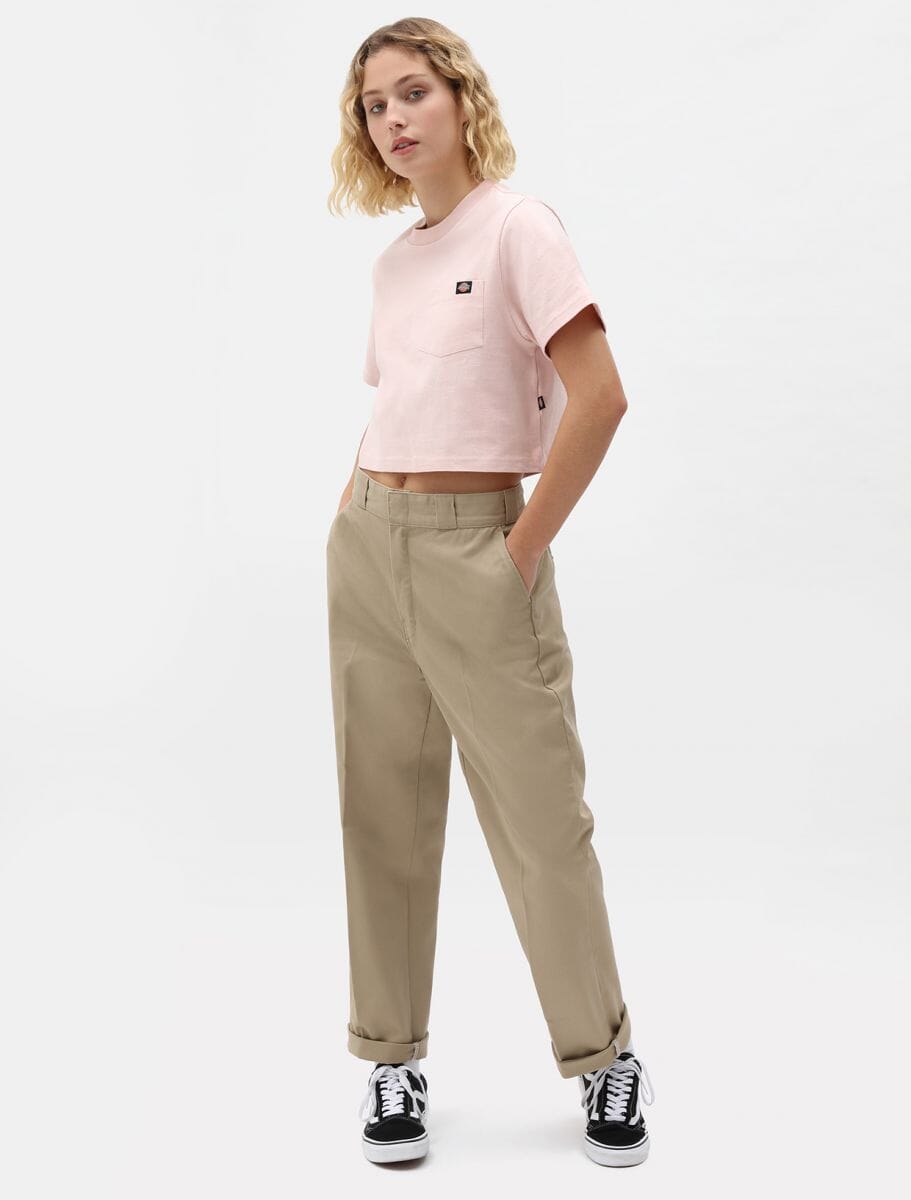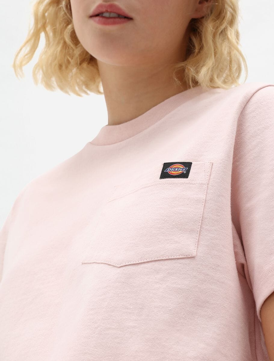 Dickies Porterdale t-skjorte til dame er en fin t-skjorte med dekorativ brystlomme og ribbestrikket rund hals, laget i bomullsjersey av høy kvalitet.