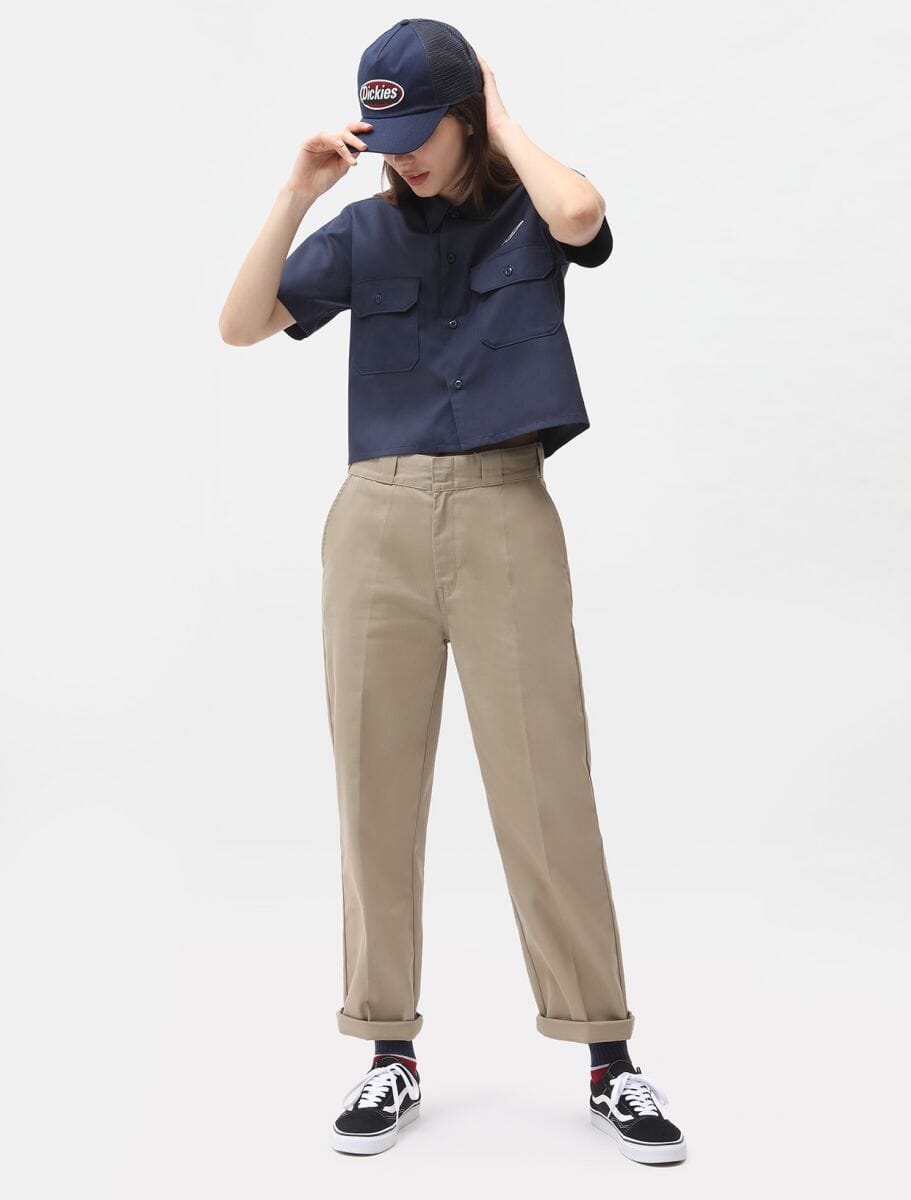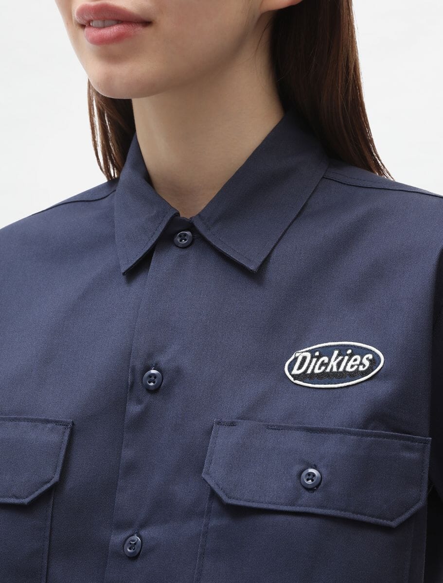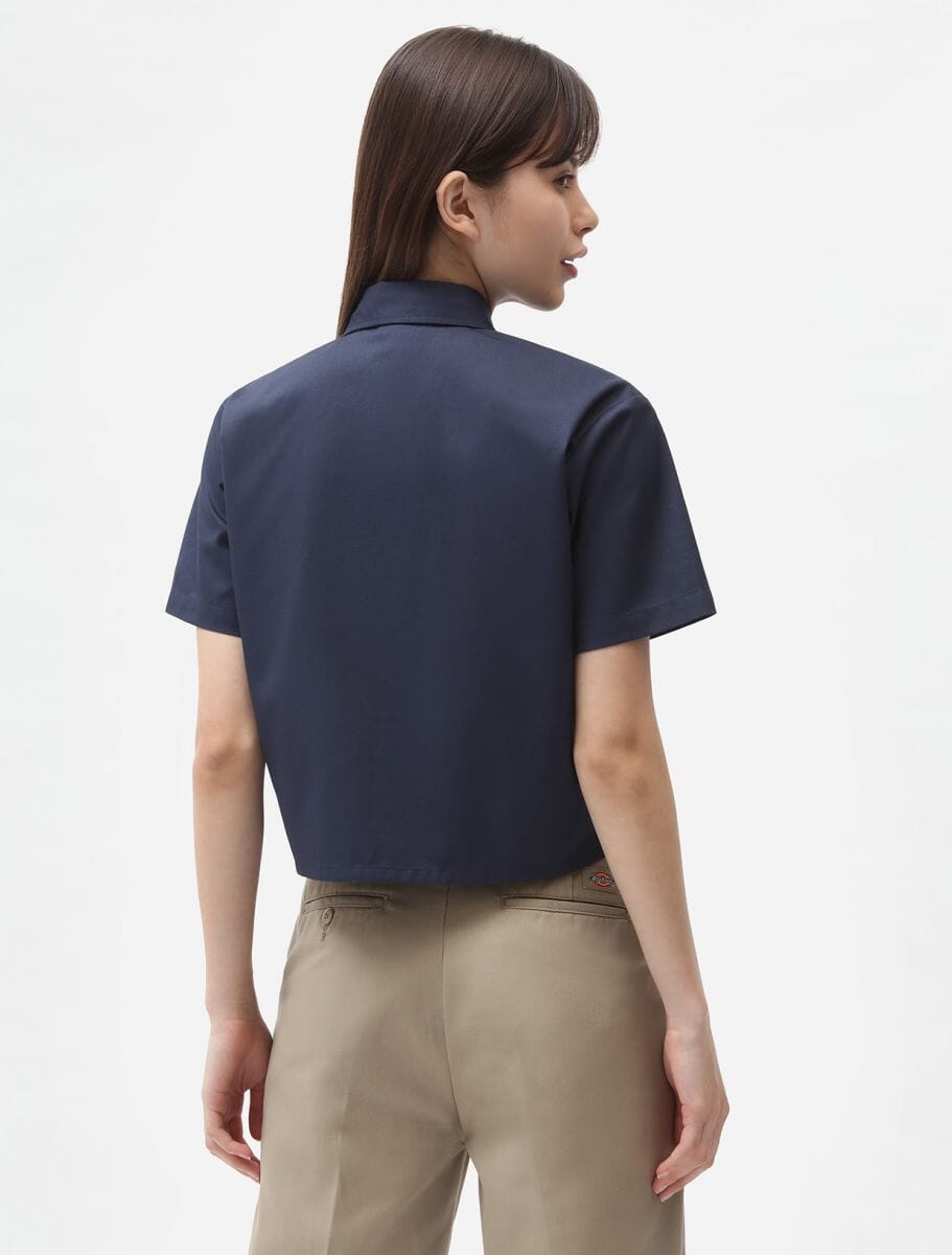Kortermet dameskjorte med 90-talls workwear-vibber, lager i resirkulert materiale.