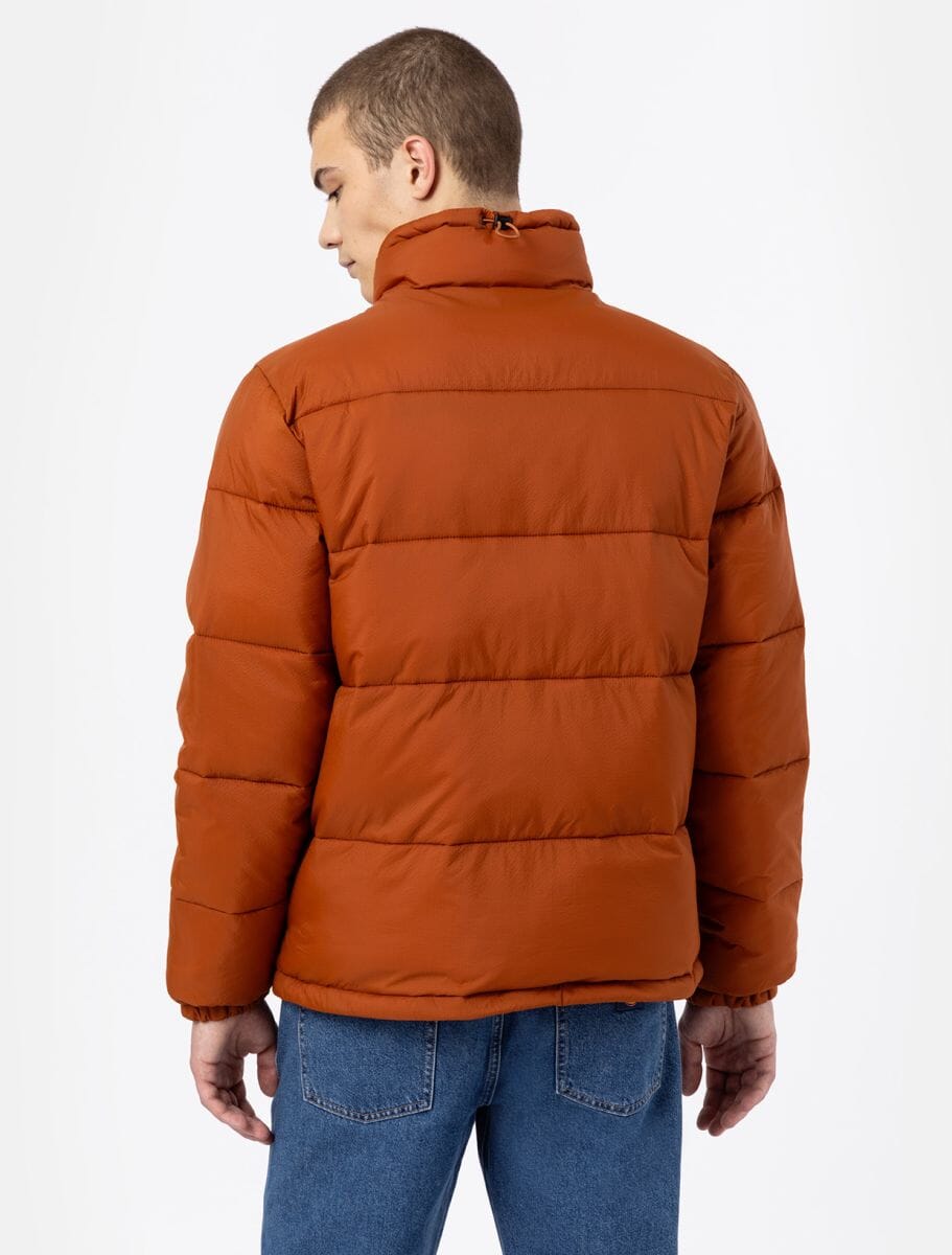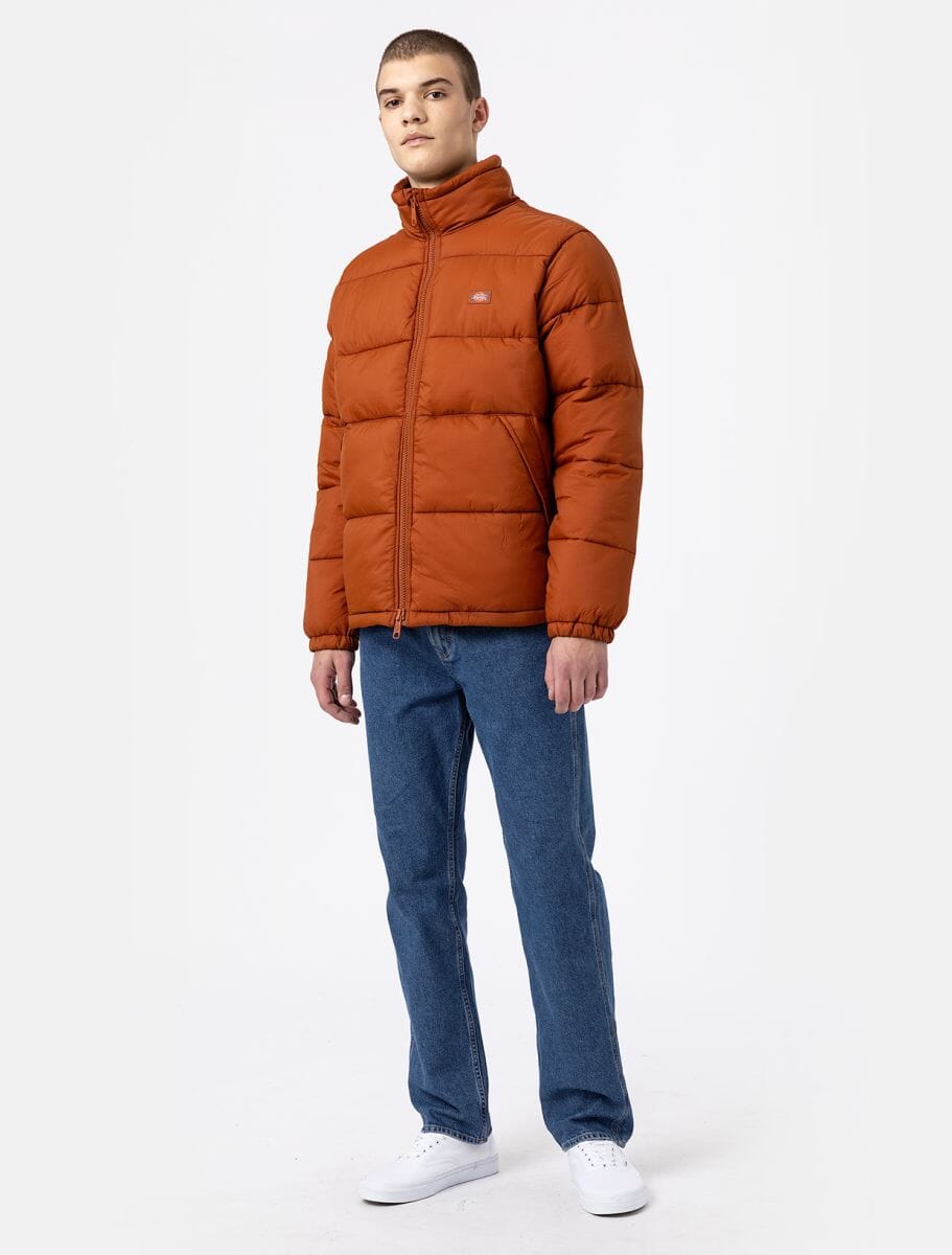 Høst- og vinterjakke fra Dickies, med kanalsydd polstring og vannavvisende ytre. Puffer-jakka har normal passform, glidelås i front, to frontlommer og innvendig snøring i halsen for justering av passform.