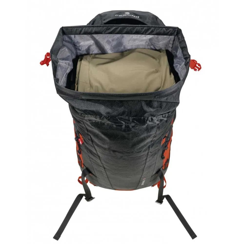 Dry Hike-sekken er en del av Ferrino sin OutDry-kolleksjon laget med OutDry®-teknologi. Dette er en membran på innsiden som tilpasser seg stoffet med optimal tetting av sømmer og andre vannutsatte punkter. Dry Hike 32L er også utstyrt med vanntette YKK-glidelåser.