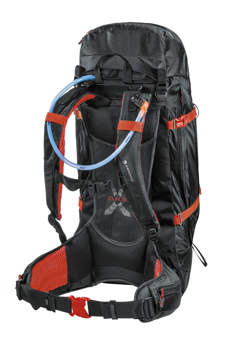 - Pockets on top lid, security pocket under the top lid, pocket in the back for the insertion of a hydration control system, side bellows pocket, pocket in waist belt