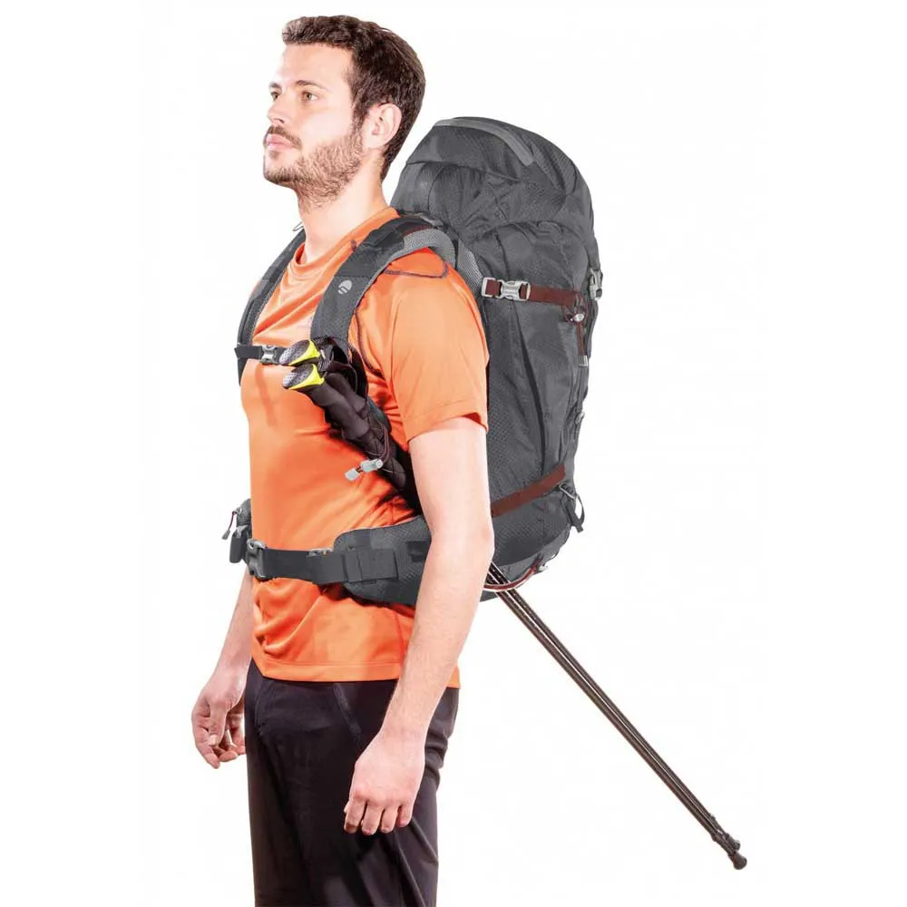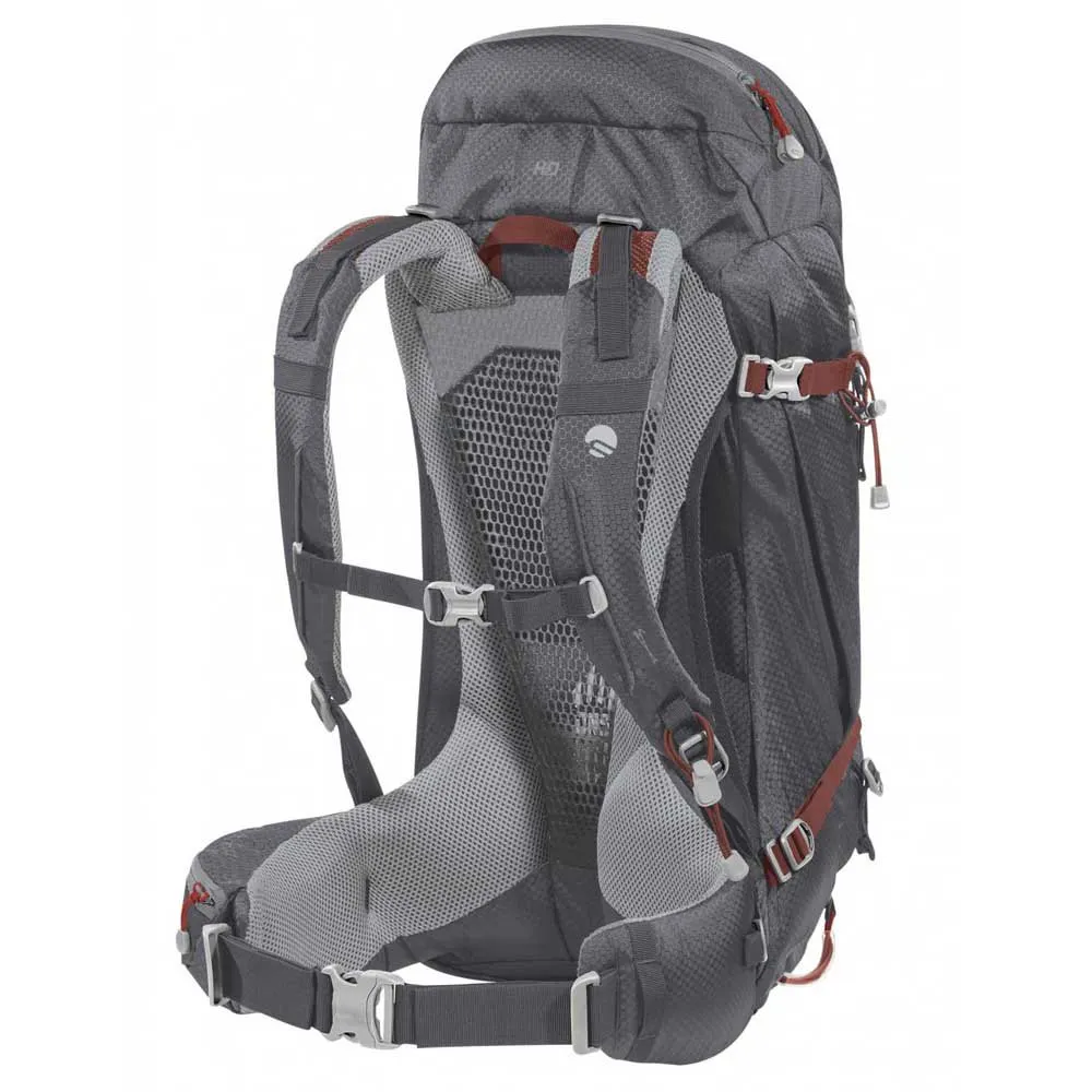 Ryggen er i pustende materiale, mens en fleksibel bæreramme i stål gir optimal fordeling av last og vekt. Ryggsekken har også en rekke praktiske lommer.