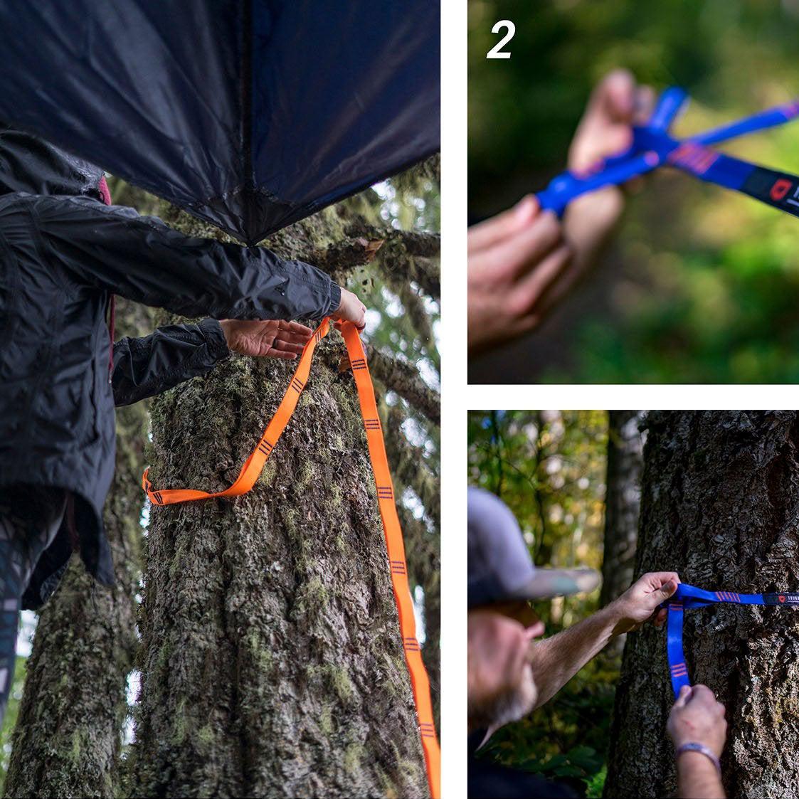 Festestropper til hengekøye med god bredde som ikke skader barken på treet.