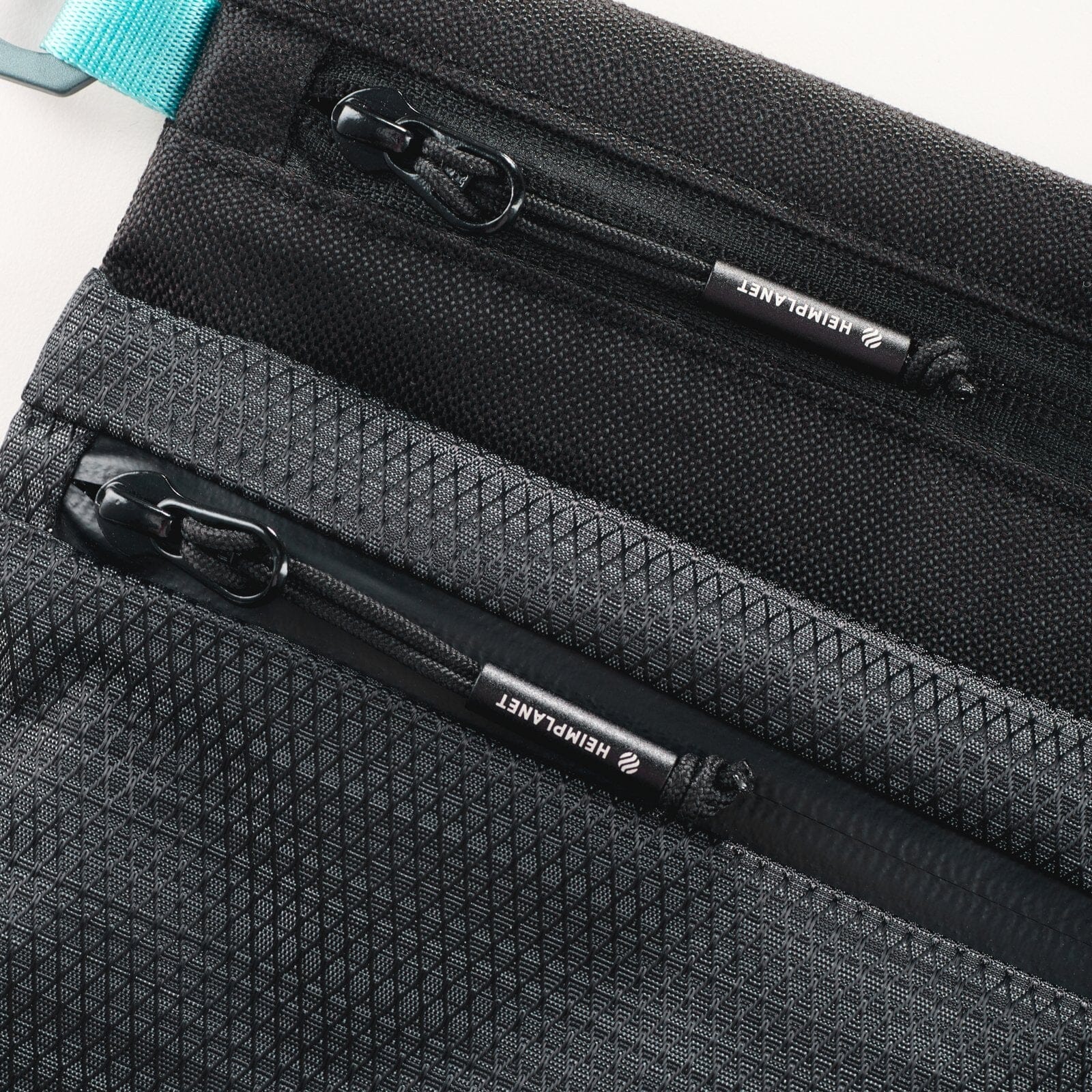 Heimplanet Neck Pouch A5 har to praktiske lommer i ulik størrelse, begge med vanntett glidelås. Lommene er sydd sammen kun i sidene, med mellomrom helt igjennom mellom de to lommene, slik at du kan bære f.eks. jakka di i mellomrommet.