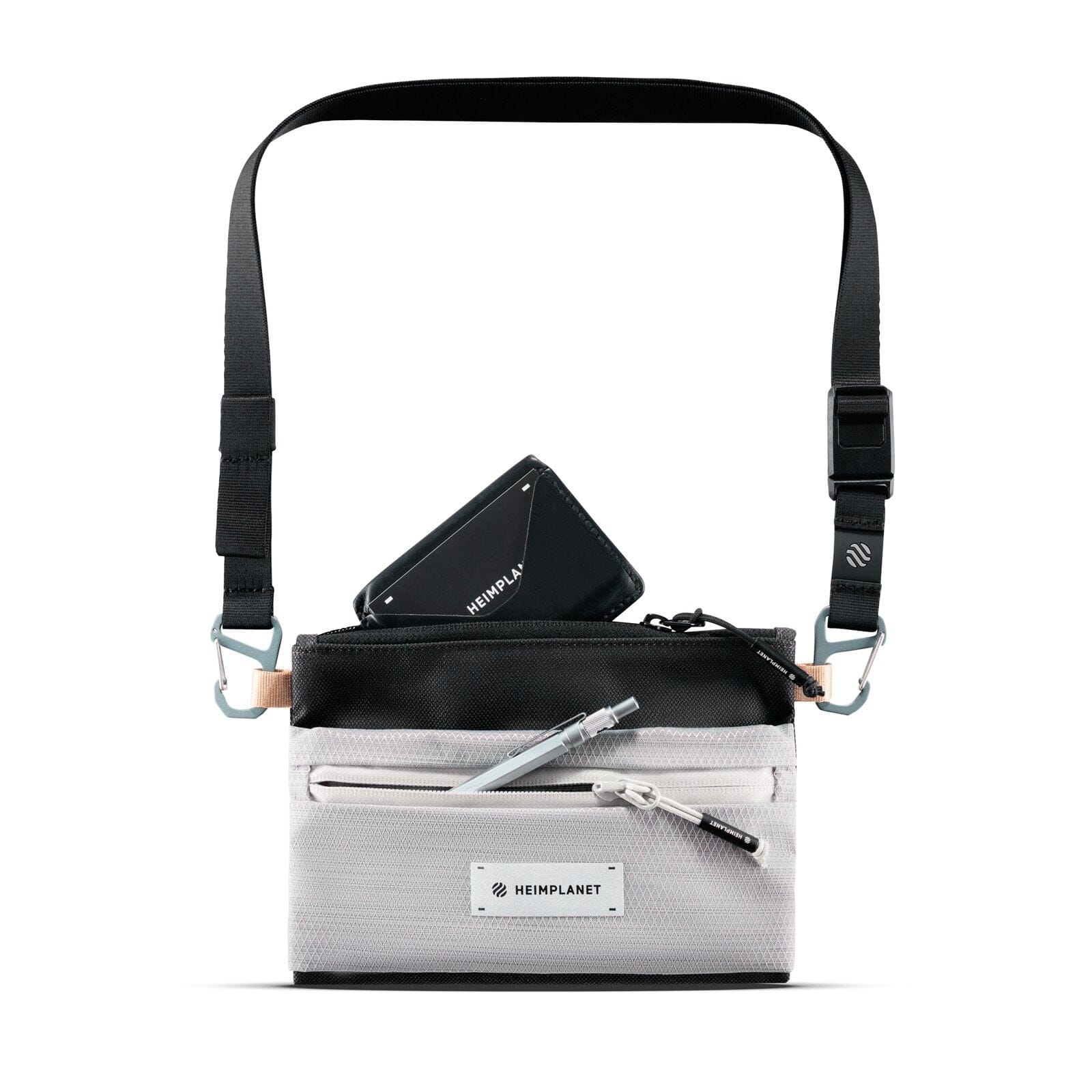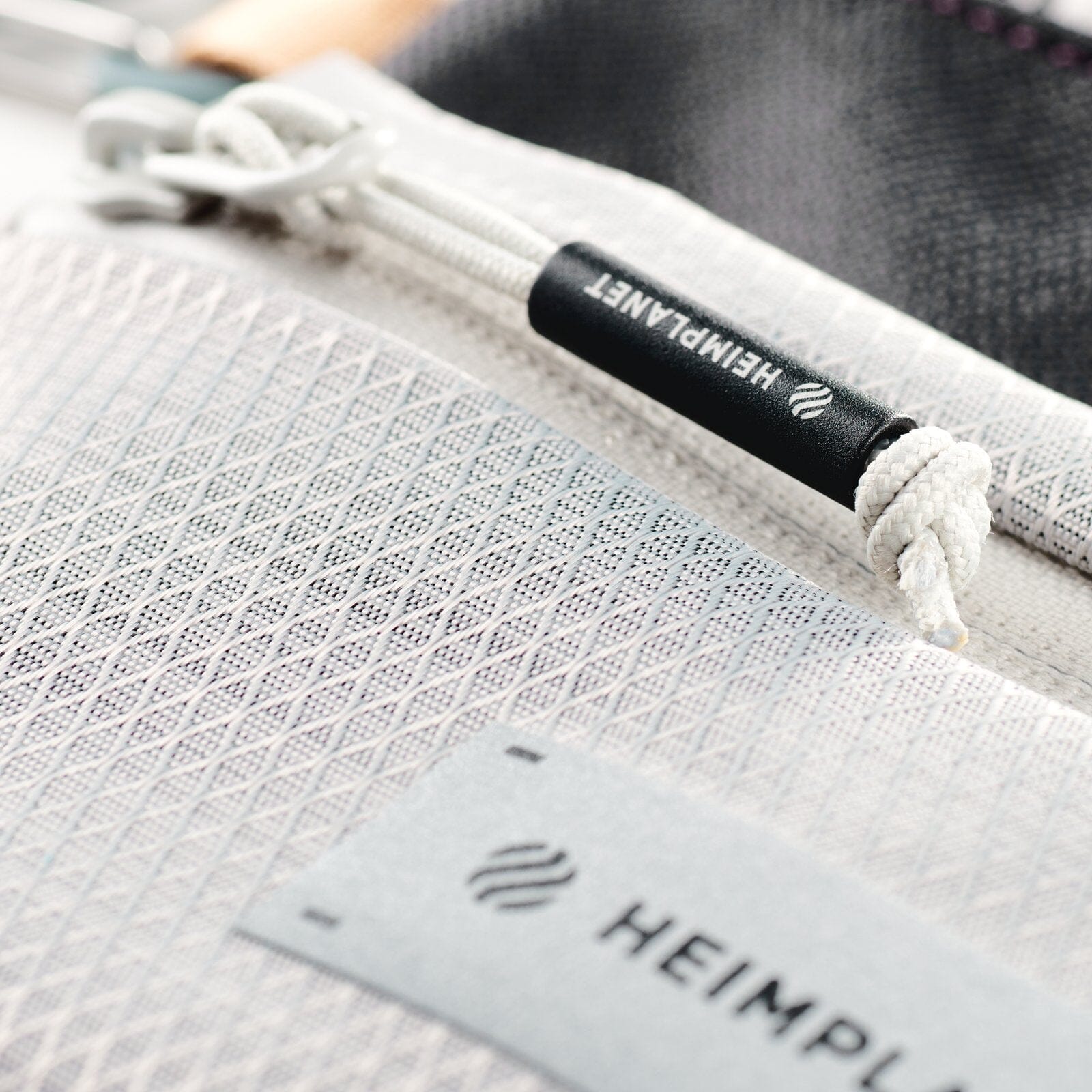 Heimplanet Neck Pouch A6 har to praktiske lommer i ulik størrelse, begge med vanntett glidelås. Lommene er sydd sammen kun i sidene, med mellomrom helt igjennom mellom seg, slik at du kan putte f.eks. jakka di mellom de to lommene og bære denne også.