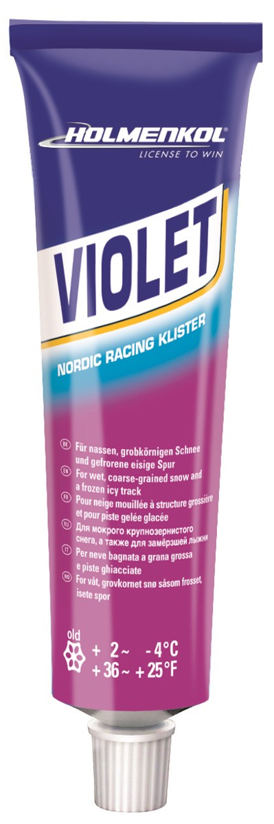 Holmenkol klister violet. Klister med bruksområde på våt og isete løyper.