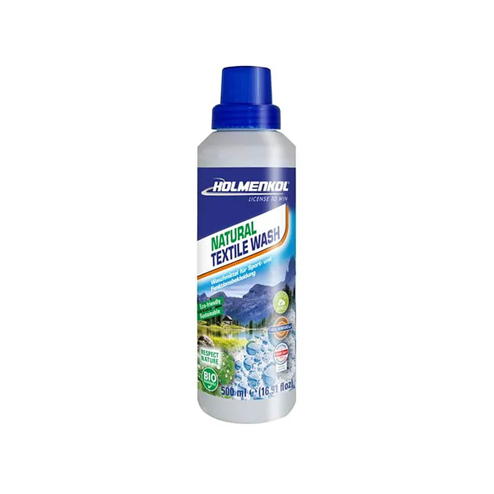 Holmenkol Natural Textile Wash vasker tekniske og pustende treningsklær og merino-ull skånsomt og uten enzymer som bryter ned fibrene i tekstilen. Kan brukes på alle membran-tekstiler, f.eks Gore-Tex, syntetisk fyll som Thinsulate, Thermolite og Primaloft, samt på elastiske materialer som soft shell og fleece.