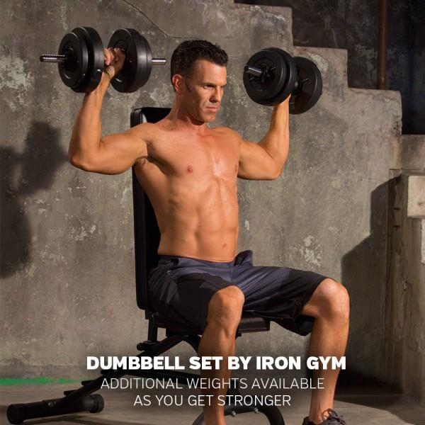 Iron Gyms Adjustable Dumbbell Set er et holdbart og intelligent designet manualsett. Hver manual leveres med avtakbare vekter og tilbyr mulighet til å trene med tre forskjellige vektkombinasjoner: 2,5 kg, 5 kg og 7,5 kg. Etterhvert som styrken øker er det mulig å kjøpe til ekstra vekter ettersom manualene klarer en total vekt på 25 kg per stykk. Manualene leveres med to skruåser som enkelt fjernes og skrus på igjen når du trenger å justere vekten du bruker.