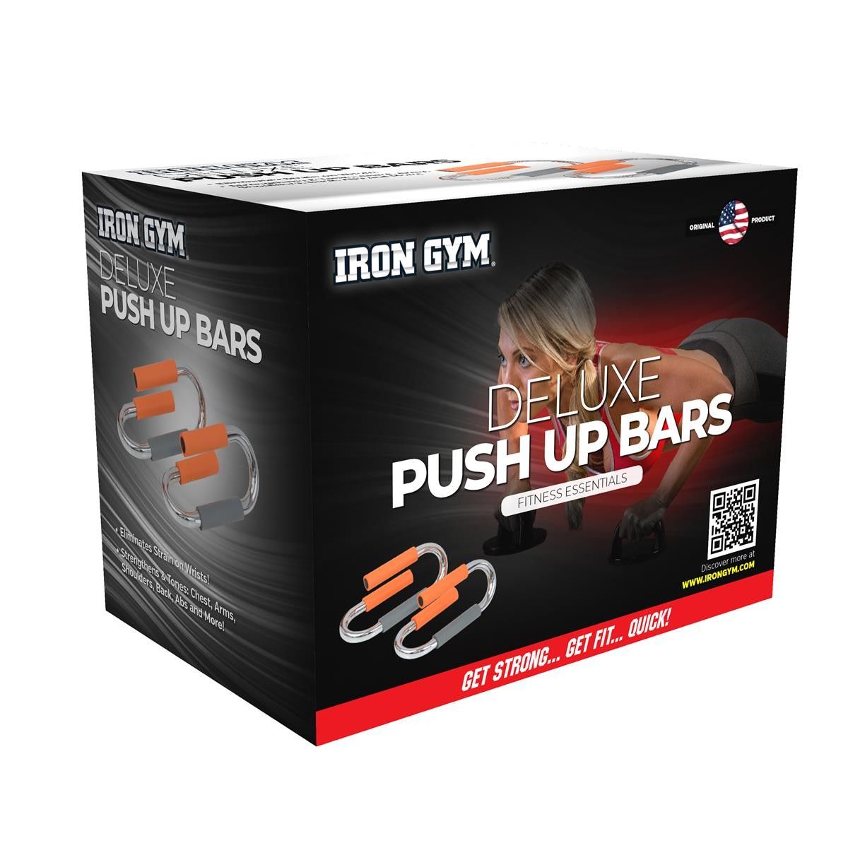 Det å bruke IRON GYM Push Up Bars Deluxe er en enkel og veldig effektiv måte å styrke og tone overkroppen på. Push Up Bars Deluxe gir en solid, sklisikker base og gir større bevegelsesområde enn vanlig push up. Push Up Bars Deluxe er vinklet for å redusere belastning på håndledd og ledd. IRON GYM Push Up Bars er kompakte og enkle å lagre. Lett og kompakt nok du kan bære dem i kofferten mens du reiser.