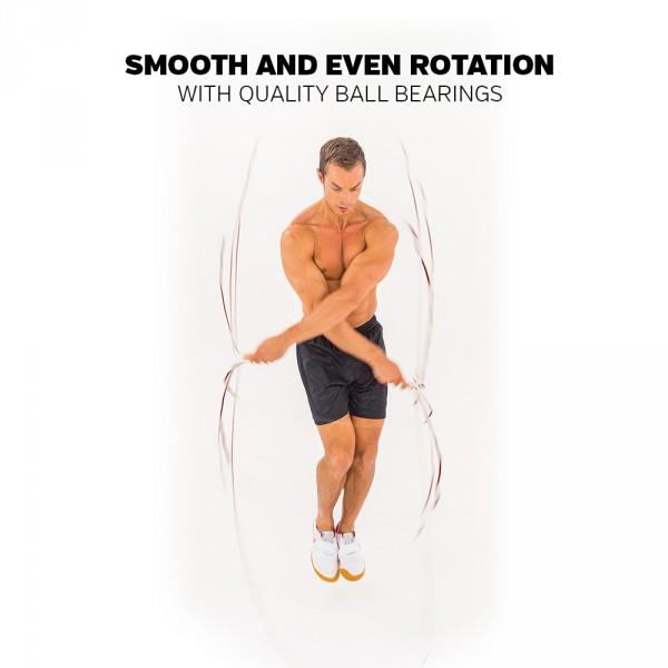 Forbedre fotarbeid, balanse og smidighet med et hoppetau av høy kvalitet - Iron Gym® Nylon Speed Rope er laget av kvalitetsmaterialer for å tilby deg et verktøy som kan hanskes med mange, tøffe treningsøkter. Dette hoppetauet er en utmerket måte å forbedre fotarbeid, balanse og smidighet på, som er avgjørende for å lykkes i treningsformer som funksjonell trening, MMA eller boksing. Takket være de gripevennlige, polstrede håndtakene vil du oppleve gjennomgående komfort og kontroll selv gjennom lange og svette treningsøkter.