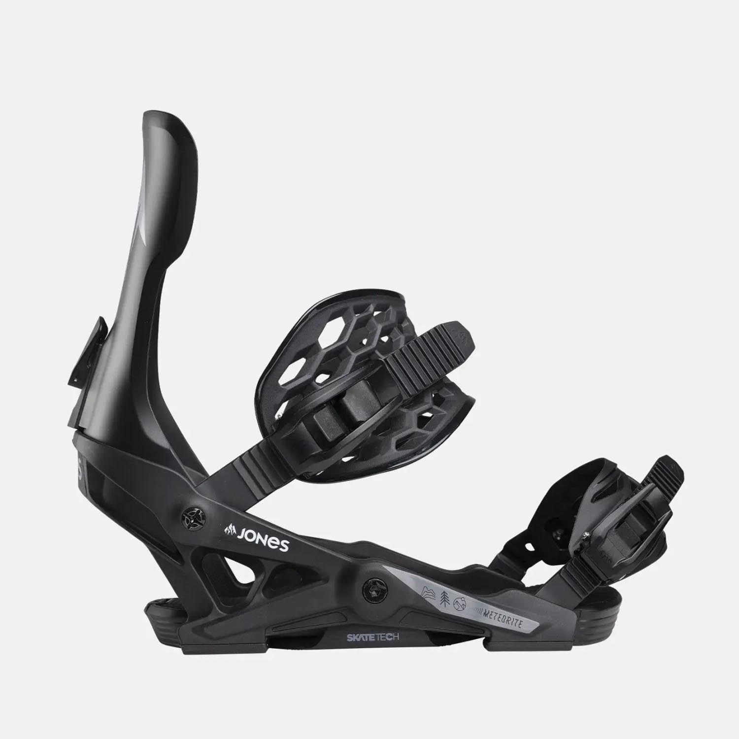 Jones Meteorite snowboardbinding passer for cruising i alle typer terreng, freestyle og kjøring i løssnø. Bindingen gir presis respons takket være SKATETECH-teknologi som overfører energi direkte til kantene. Bindingen har en Dynamic Flex highback som er stiv i midten for solid støtte, mens mykere sider gjør det enklere å manøvrere.
