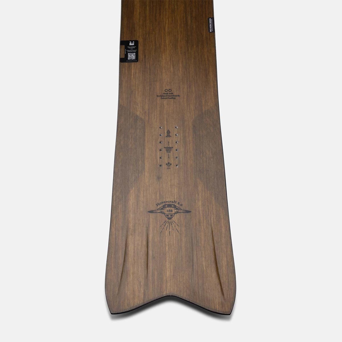 Nose med flyt, camber underfoot og long sidecut takler det aller meste. Hovercraft 2.0 er i tillegg laget av resirkulerte materialer fra gamle snowboard.