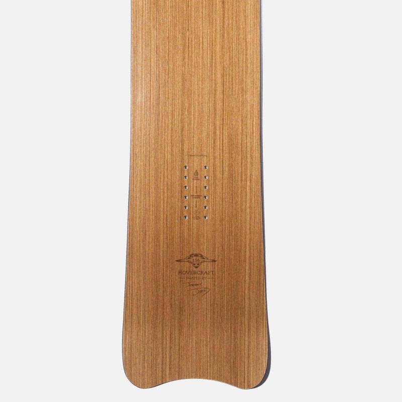 Nytt design med toppsheet i finér, sort + transparent base og laser-etset utsmykking på topsheet for å unngå bruk av kjemikalier verken på topsheet eller sidevegger. Dermed er Hovercraft det mest bærekraftige brettet Jones Snowboards har laget noensinne!