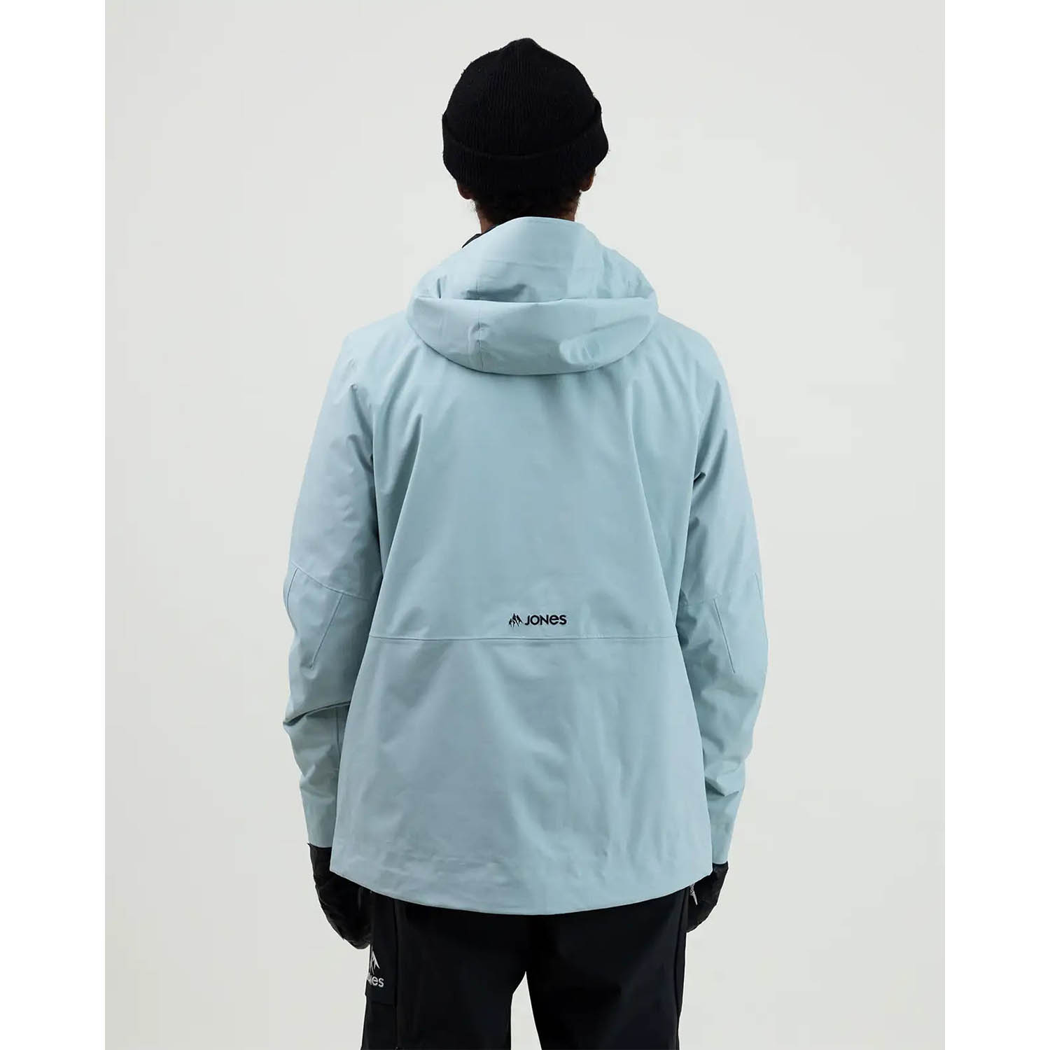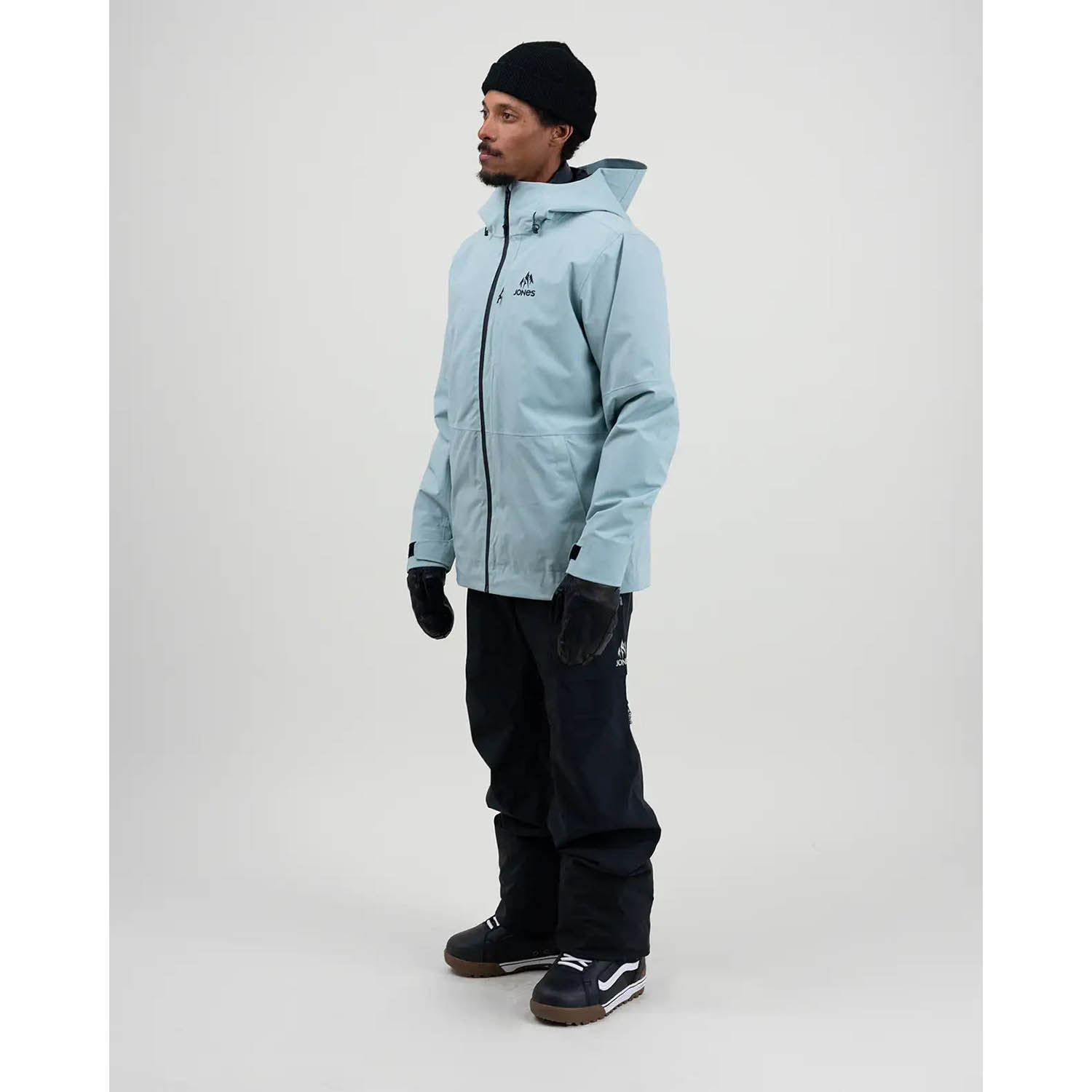 Jones Snowboards Mountain Surf Jacket er en mellomlang snowboardjakke med avslappet passform for maksimal komfort og beskyttelse, laget i 100 % resirkulert materiale med fireveis stretch og to-lags laminert skall med 20K vanntetthet og 20K pusteevne.
