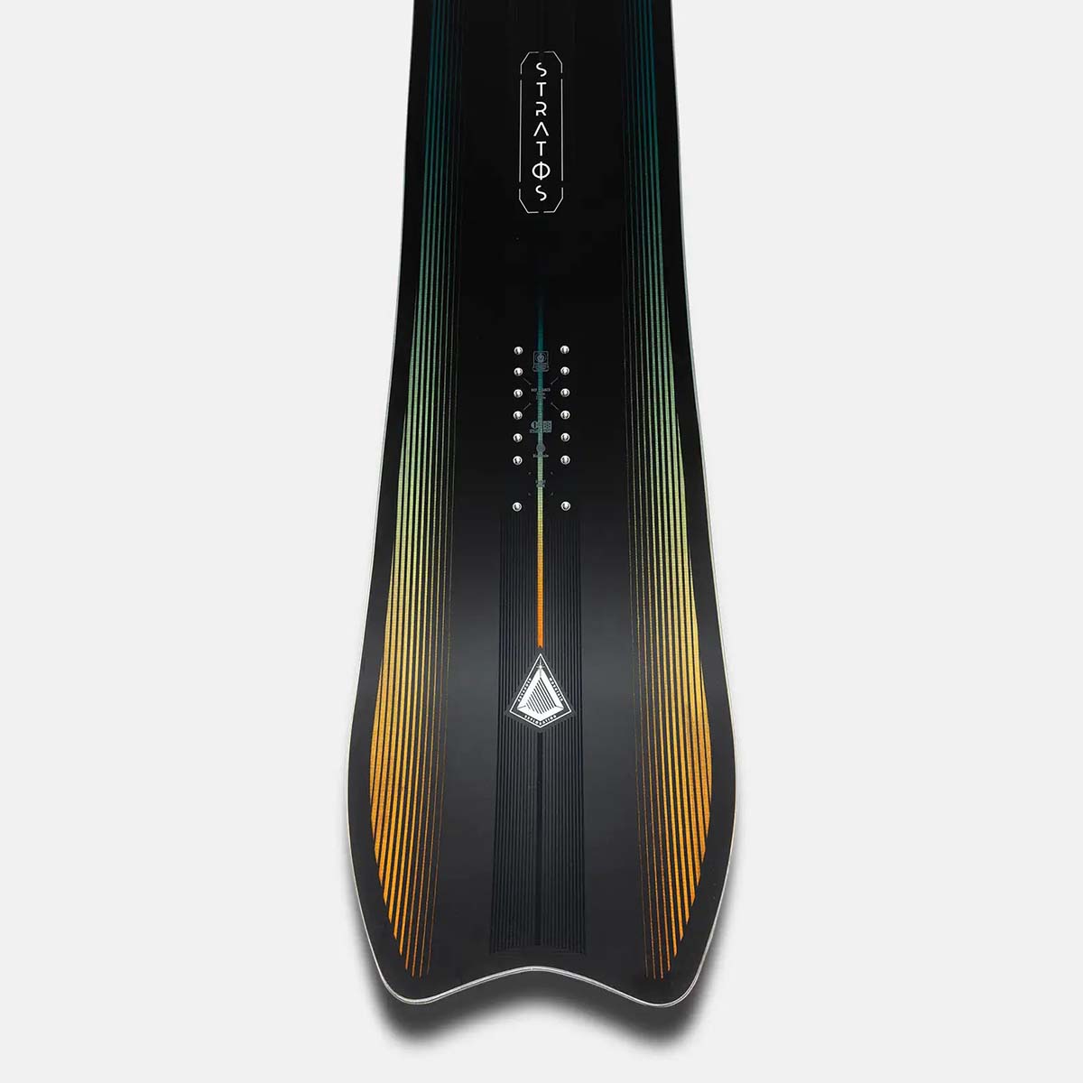 Jones Stratos er et allsidig, presist og energisk freeride snowboard som gir god kontroll i variert terreng, samt god flyt i pudder. Kombinasjon av rocker i nose/tail og camber under foten, samt medium stiv fleks, gir god respons og stabilitet i høy hastighet.