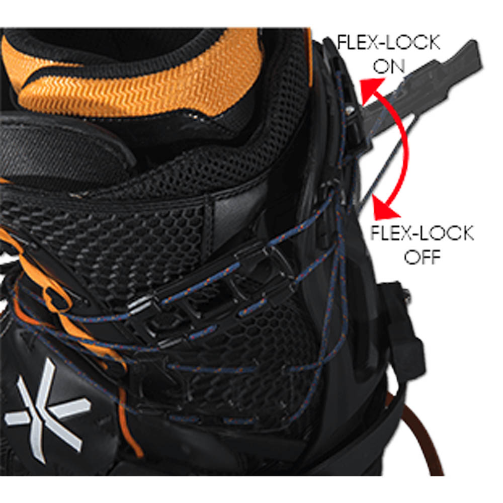 Med Flex-Lock og rask 180-graders vendbar mekaniske fra flex-off til flex-on, blir ikke traversering lenger splitboardernes svake punkt. Flip på Flex-Locken for å stive av og redusere sidefleks slik at kangrepet blir bedre, og du for mer effektiv kraftoverføring til kant når du skal traversere, spesielt på isete underlag, og flip den tilbake igjen for å gjenvinne sideflex når du skal kjøre nedover.