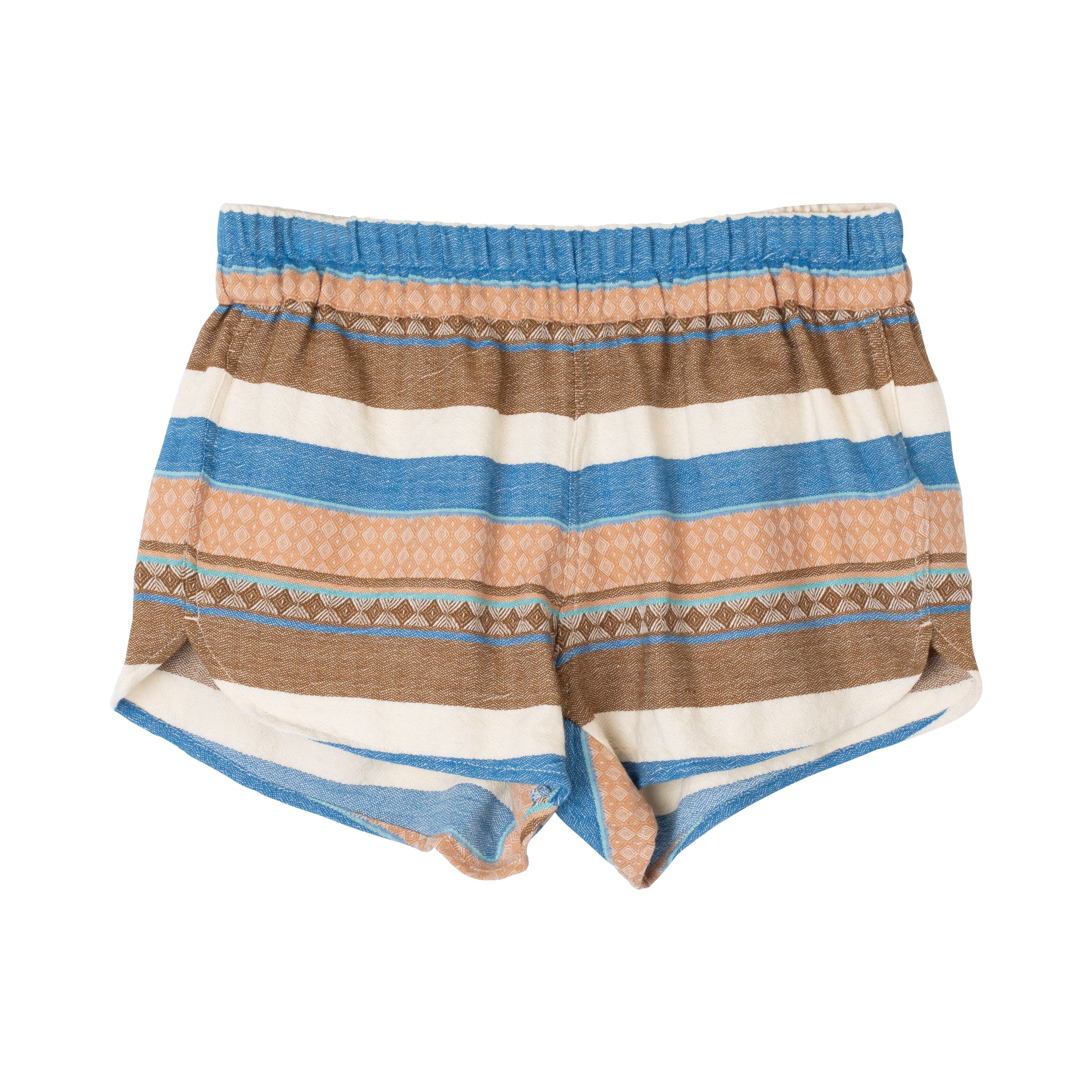 Bruk sommershortsen på stranda, når du slapper av i hengekøya, eller what ever. Pull-on shorts med elastisk midje og middels høyt liv, baklomme med innfelling og buet kant nederst.