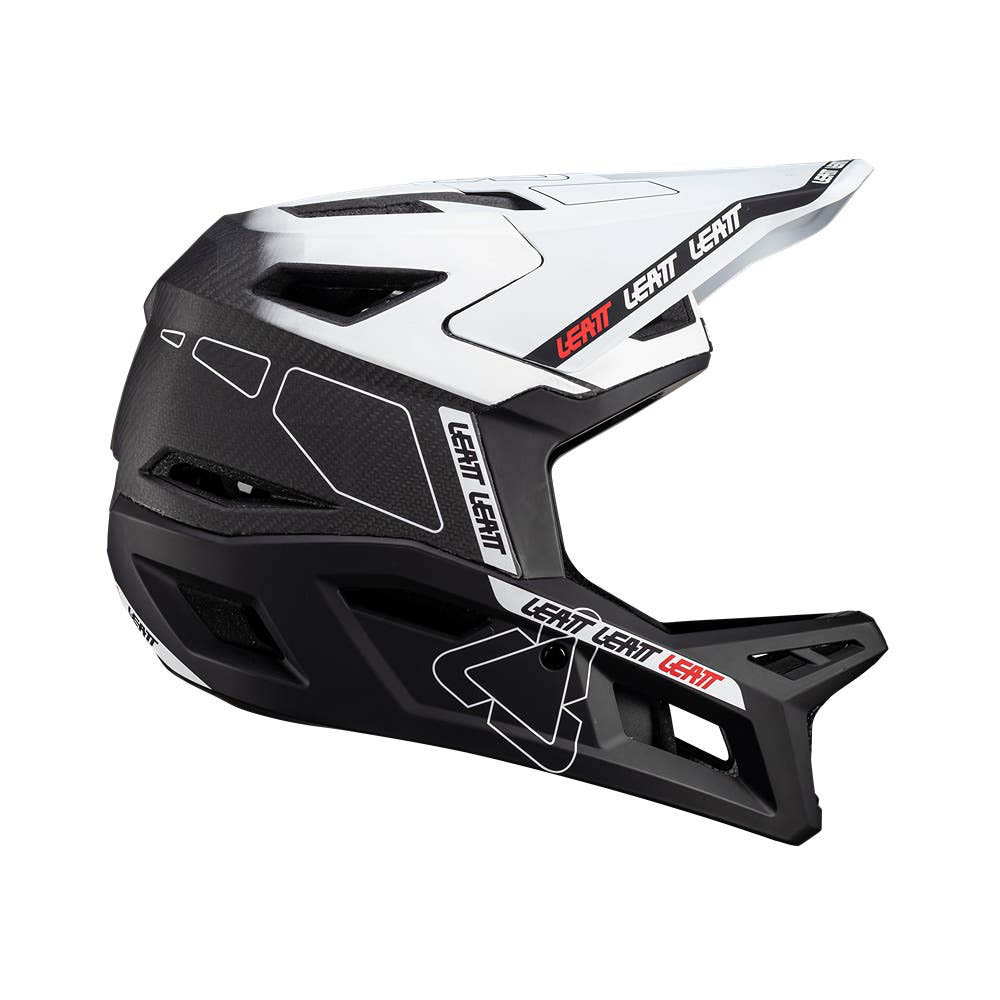 Fullface-hjelmen har Leatt sin 360 ° Turbine Technology som beskytter mot slag mot hodet, samtidig som det demper rotasjon av hjernen og reduserer risikoen for hjernerystelse. Munnstykket har ventilasjonsdeksel som kan tas av når det er hett rundt øra.