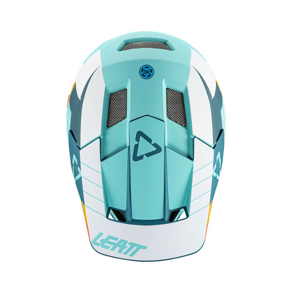 Fullface-hjelm med optimal passform ved bruk av nakkekrage, god ventilasjon og Leatt sin 360° Turbine Technology som bekytter både og hode og hjerne ved eventuelle krasj.