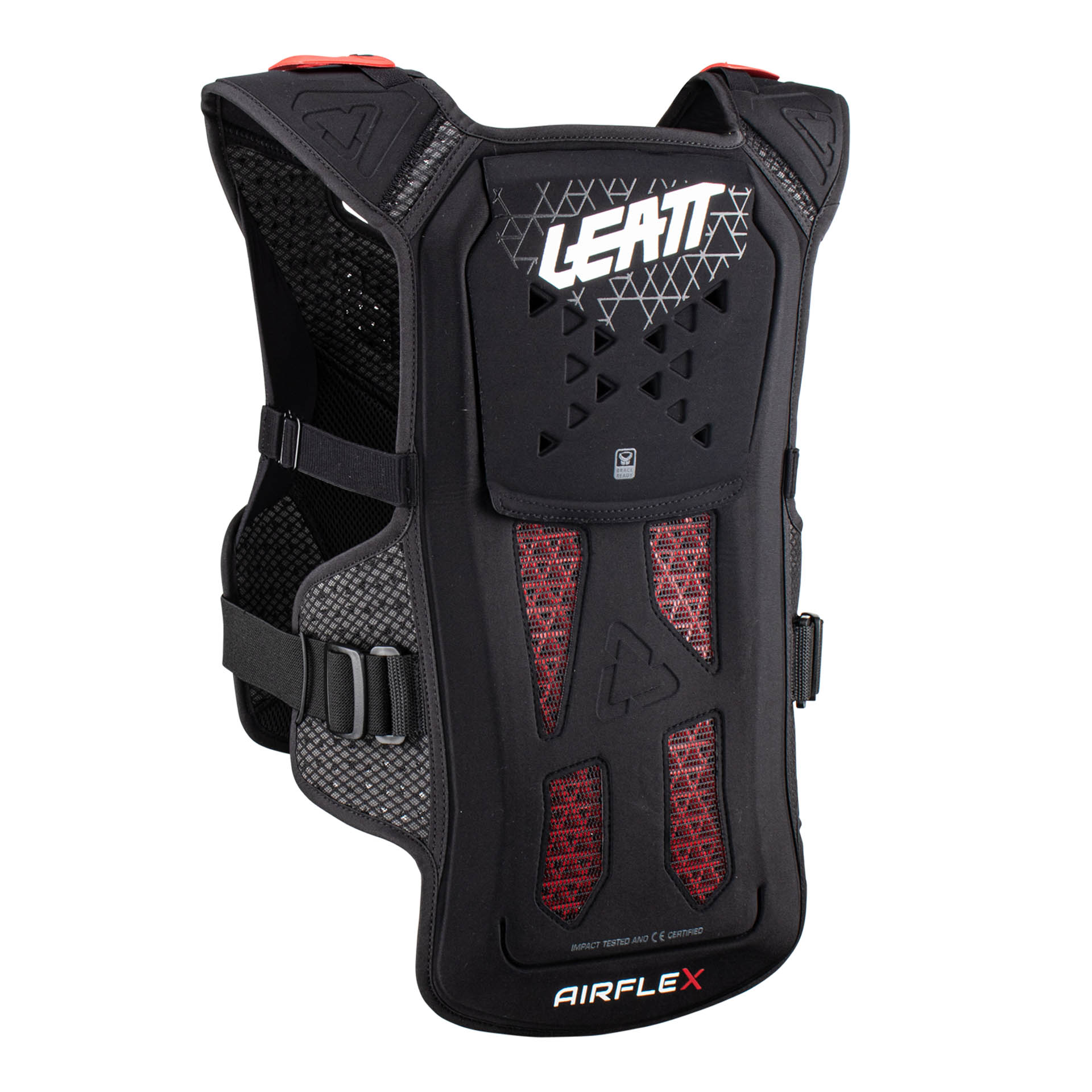 Leatt bruker AirFlex støtbeskyttelse for bryst og rygg, noe som gir optimal beskyttelse, komfort og ventilasjon. Lengre rygg gir dekning hele veien ned. Kan brukes med og uten Leatt Neck Brace.