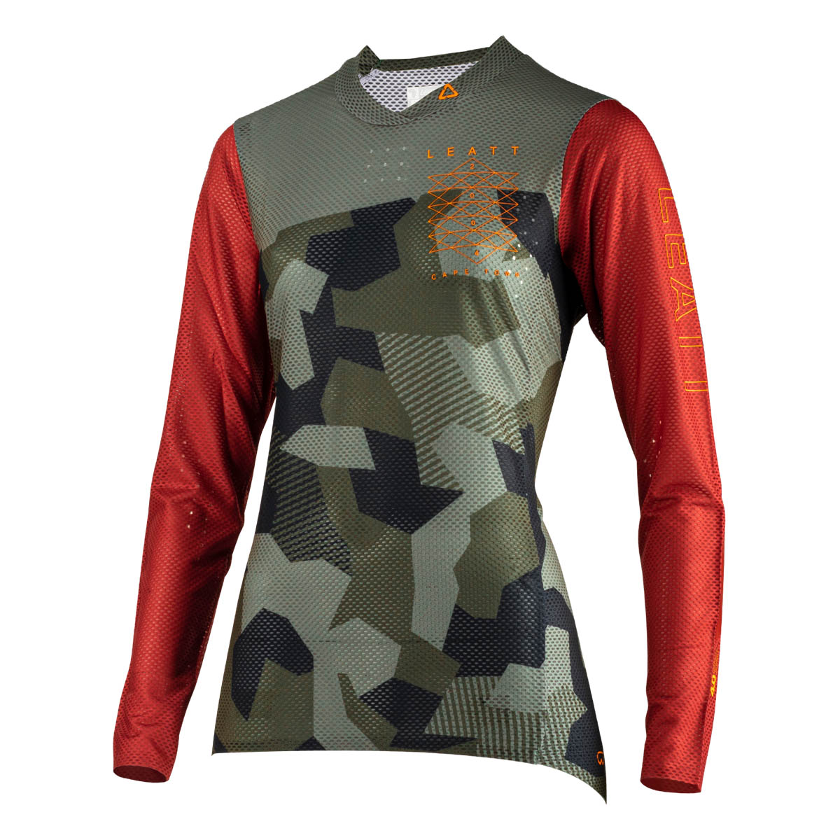 Denne lette sykkeltrøya for damer har racing stretch fit for bruk med eller uten rustning og nakkekrage, forsterket Brush Guards-panel på albuene og MoistureCool wicking-materiale.