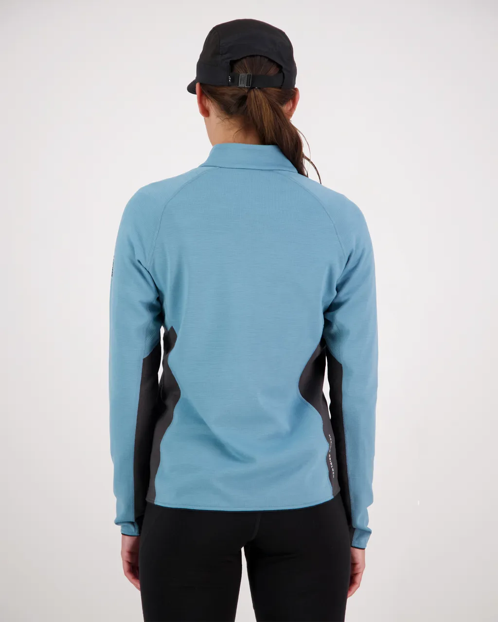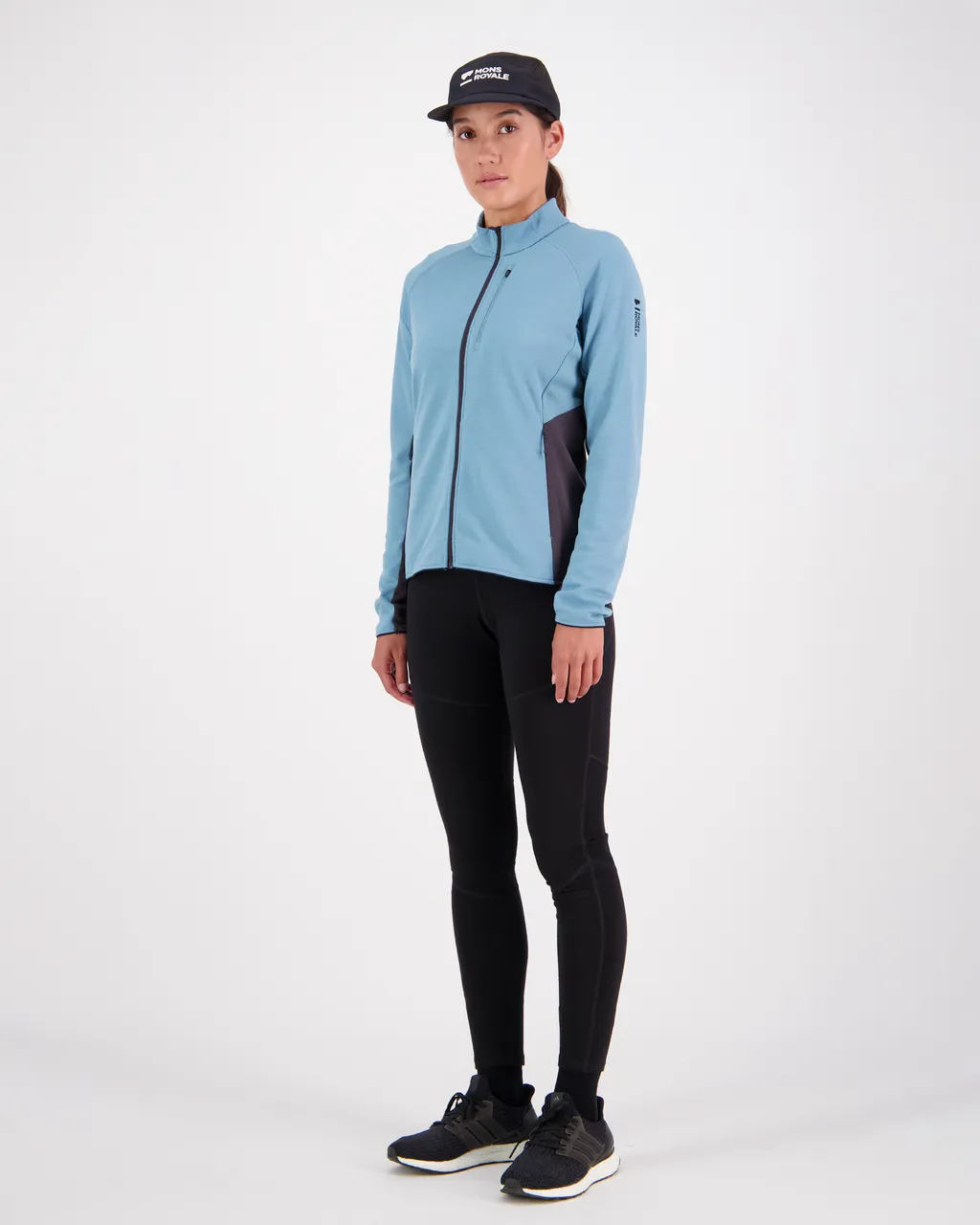 Turjakke til dame, eller mellomlag, i lett og tynn merino fleece. Passer spesielt godt til aktiviteter med høy intensitet.