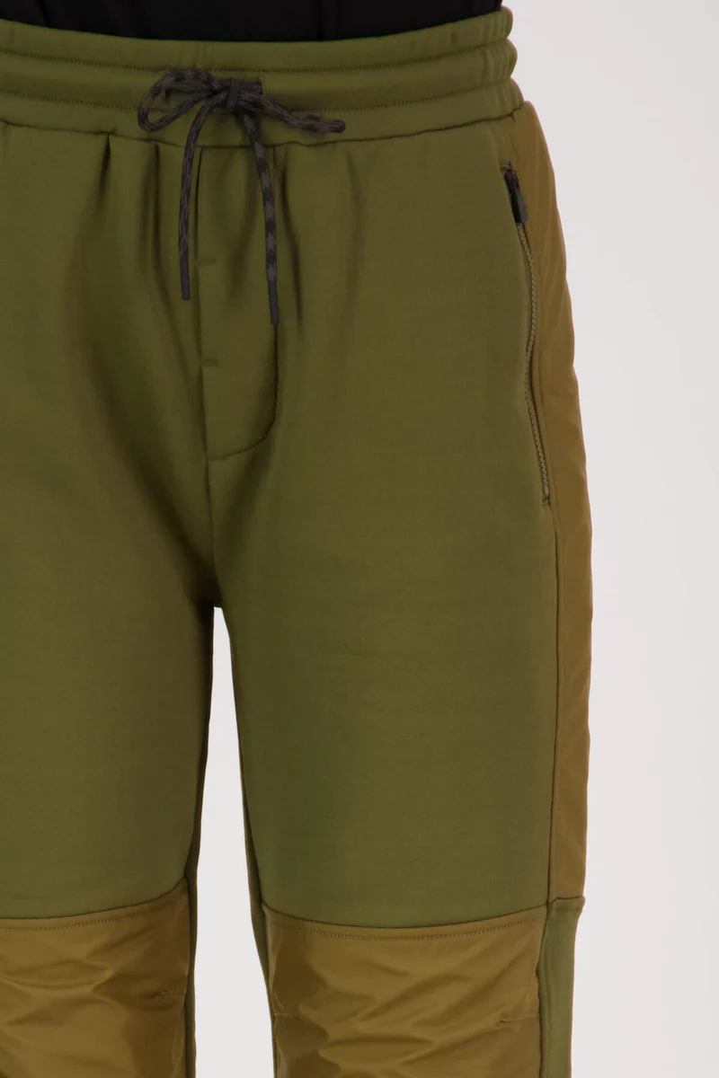 Materialet er spesielt behagelig med sin kombinasjon av merinoull og fleece, med vannavvisende rip stop-paneler. Sporty og avslappet look med snøring i livet og elastisk strikk i ankel.