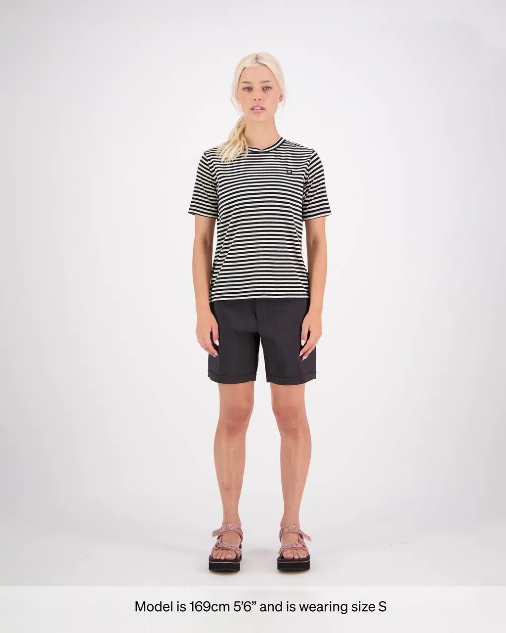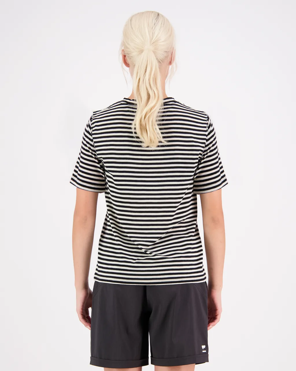 Med de temperaturregulerende, fuktighetsabsorberende, pustende og antibakterielle egenskapene til merino-ull, er dette en t-skjorte til dame som passer til bruk hele året.