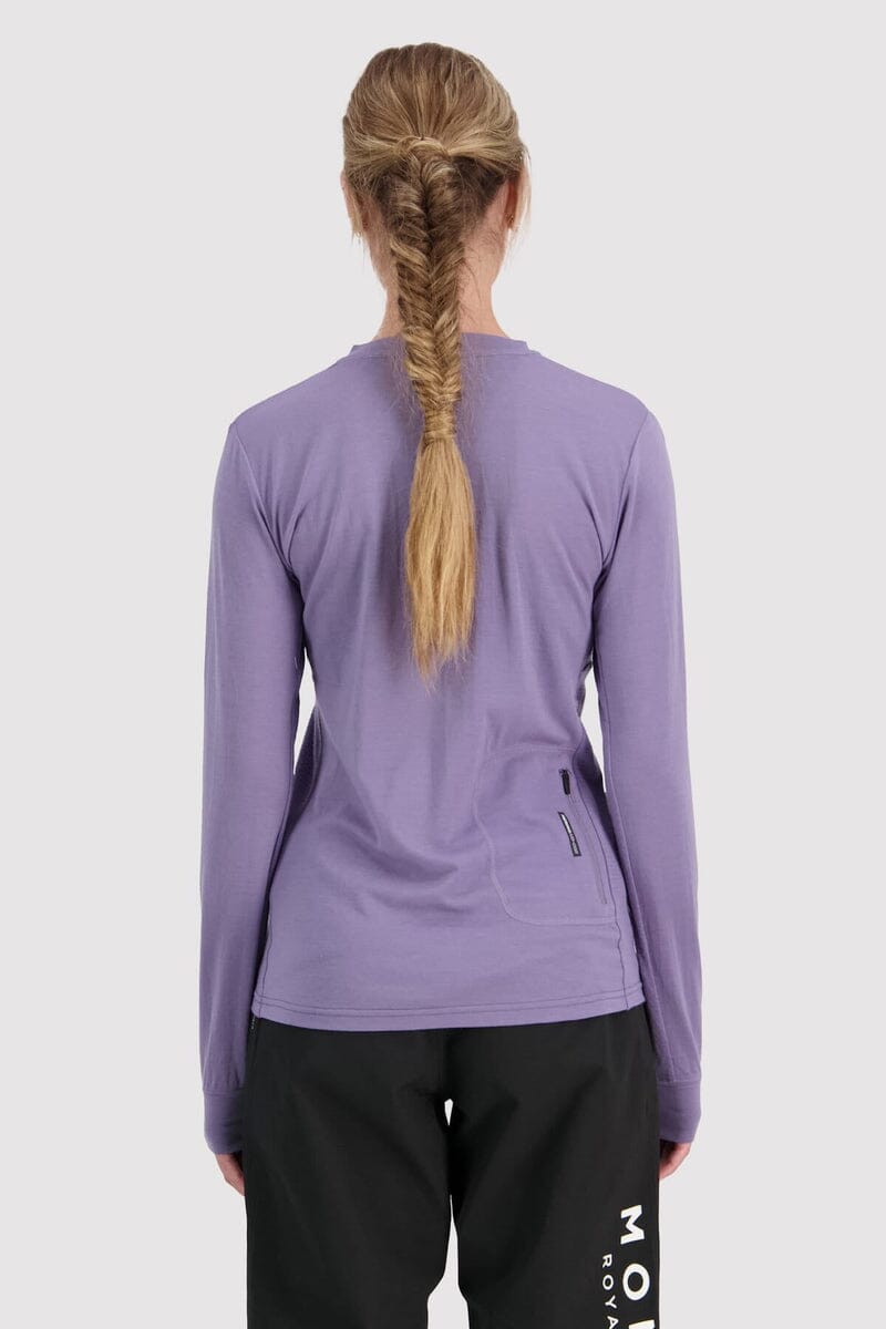 Langermet og lett sykkeltrøye til dame, med v-hals og merino-ull fra Mons Royale. Passer perfekt for lange sykkeldager eller andre fritidsaktiviteter.